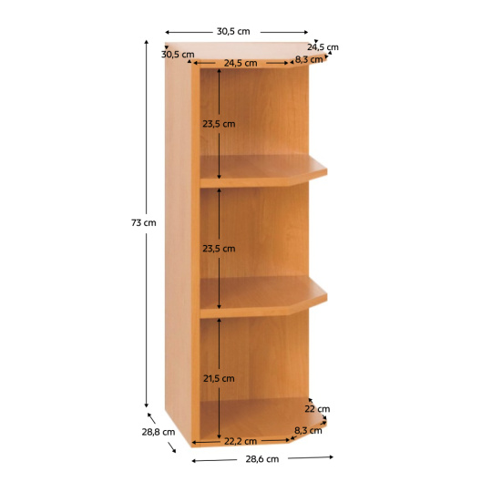 Materiál: DTD laminovaná Barva: olše Rozměry (ŠxHxV): 28,6x22 / 28,6x73,6 cm Tloušťka materiálu: 16 mm pravé provedení horní rohová otevřená Možnost doobjednat ozdobnou lištu KORUNA Dodávané v demontu Možnost dokoupení ruzných sektorových skríněk,koruny a univerzálního L/P dřezu. Cena za 1 bm pracovní desky ke LORA MDF klasik olše je 1.450 Kč. Ceny spodních skřínek jsou bez pracovní desky. Cena za 1 bm koruny je 590 Kč a koruny na W60/60 je 590 Kč Požadovaný rozměr ozdobné lišty napište do poznámky v objednávce. Horní skříňky se nemontují na lištu, ale věší se na háčky. Háčky do zdi nejsou součástí balení, je třeba si je dokoupit.