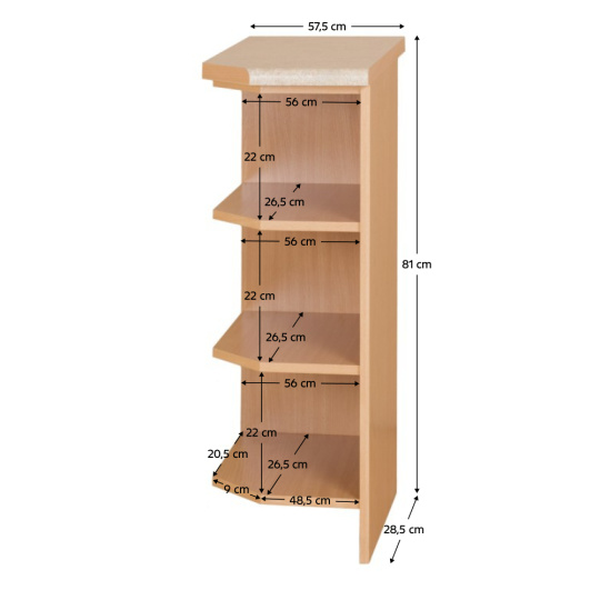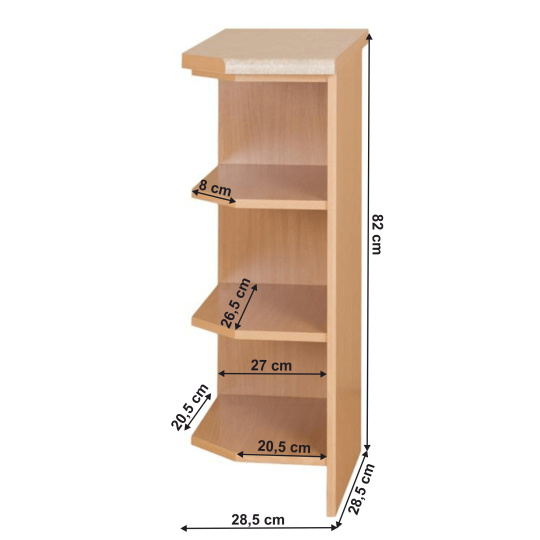 Materiál: DTD laminovaná Barva: Olše Rozměry (ŠxHxV): 57,5x28,5x81 cm levé provedení dolní rohová otevřená Bez pracovní desky Dodávané v demontu Tloušťka materiálu: 16 mm cena spodních skříněk je bez pracovní desky Možnost dokoupení ruzných sektorových skríněk,koruny a univerzálního L/P dřezu. Cena za 1 bm pracovní desky ke LORA MDF klasik olše je 1.450 Kč. Ceny spodních skřínek jsou bez pracovní desky. Cena za 1 bm koruny je 590 Kč a koruny na W60/60 je 590 Kč Požadovaný rozměr ozdobné lišty napište do poznámky v objednávce.