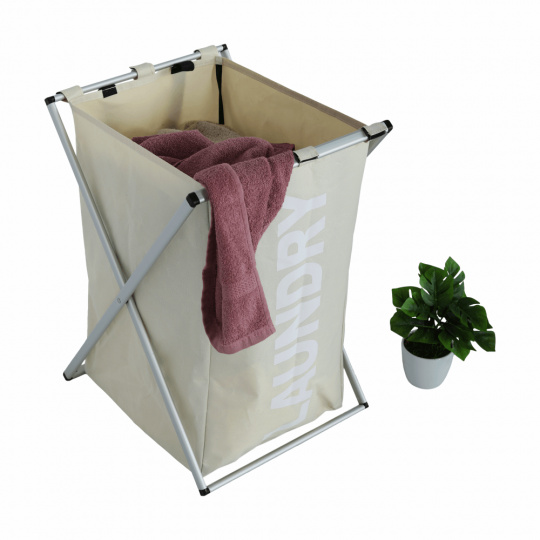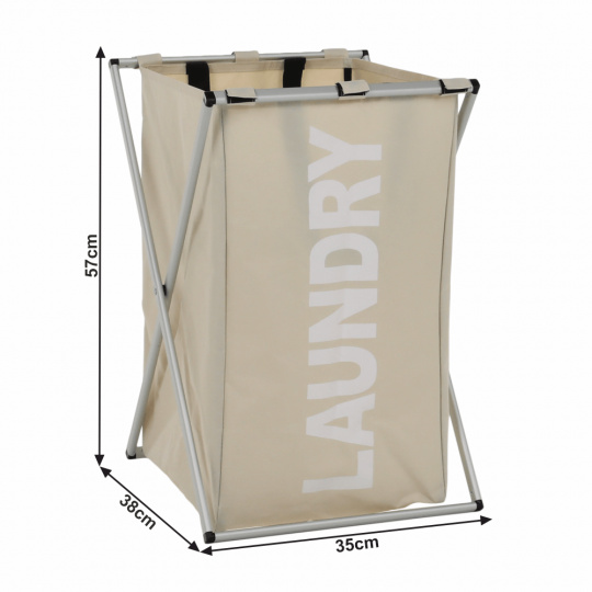 Materiál: látka/kov Barva: šedobéžová Rozměry (ŠxHxV): 39,5x37x58 cm Nosnost: 15 kg Látková ouška pro lepší manipulaci Skládací