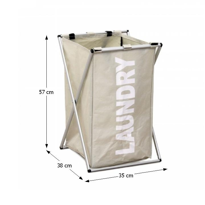 Materiál: látka/kov Barva: šedobéžová Rozměry (ŠxHxV): 39,5x37x58 cm Nosnost: 15 kg Látková ouška pro lepší manipulaci Skládací