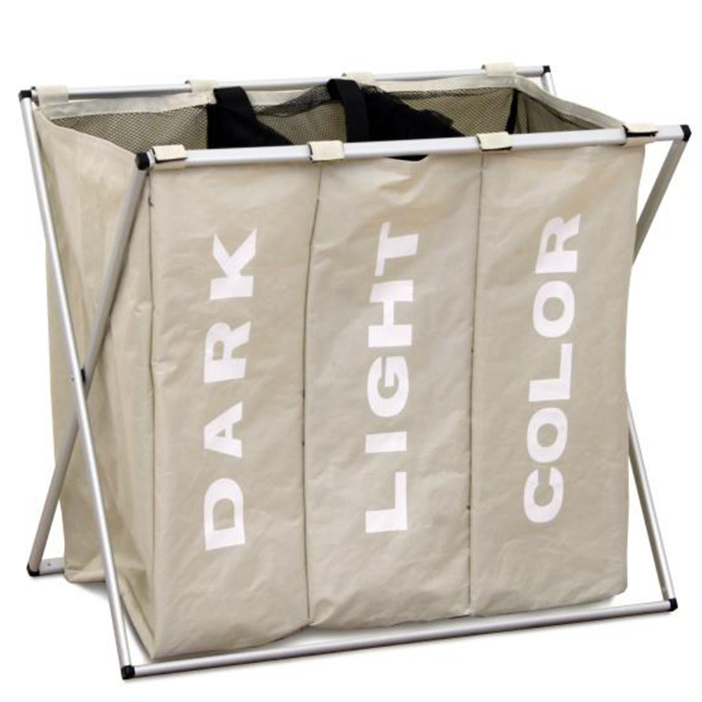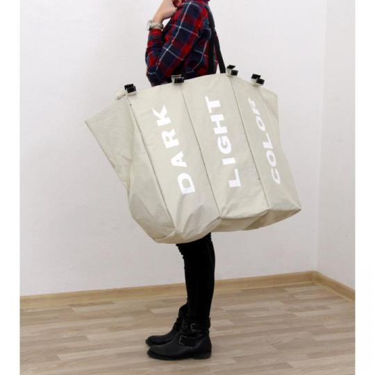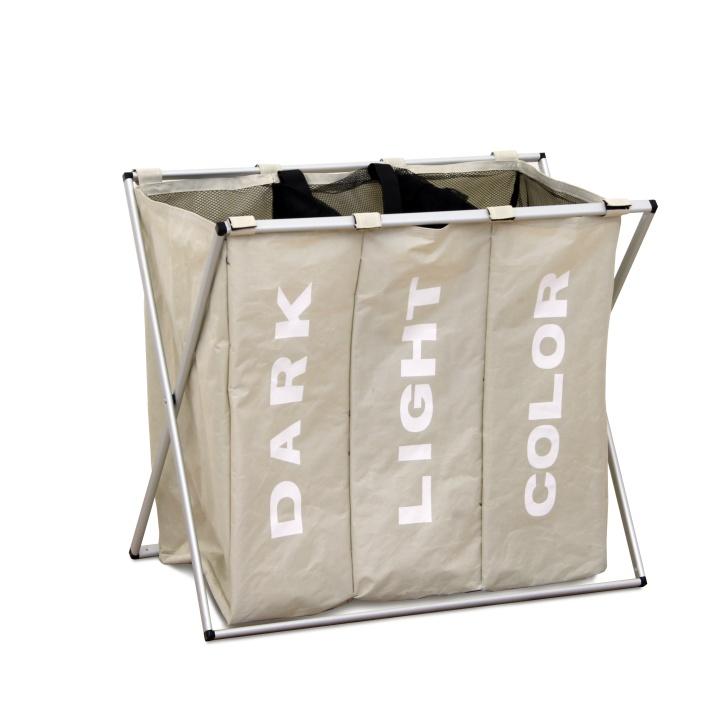 Látkový koš na prádlo, šedobéžová, LAUNDRY TYP 3