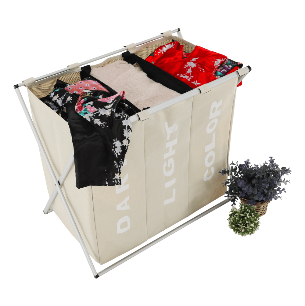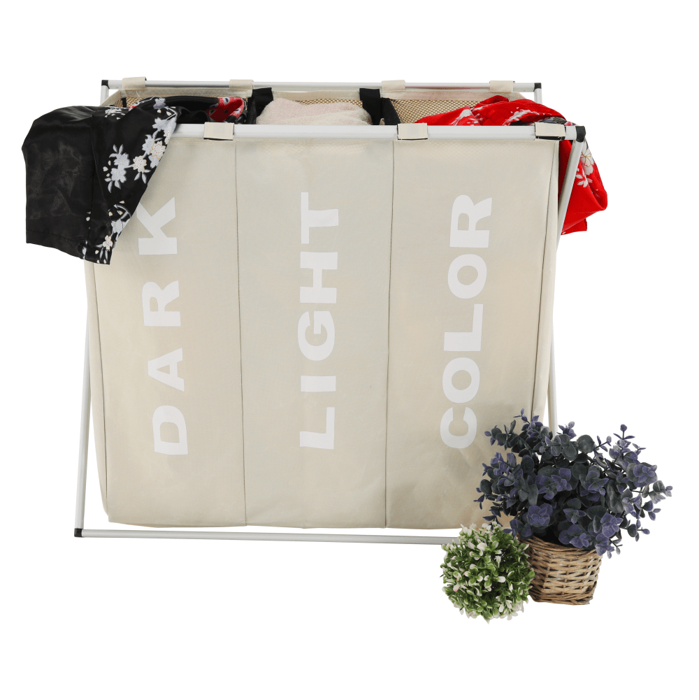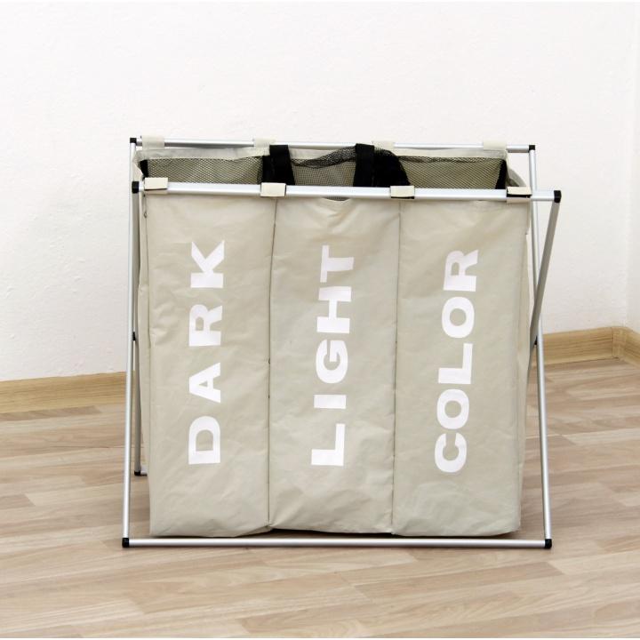 Látkový koš na prádlo. Materiál: látka/kov Barva: šedobéžová Rozměry (ŠxHxV): 61,5x37,5x57 cm Nosnost: 15 kg Praktický úložný prostor Látková ouška pro lepší manipulaci Skládací