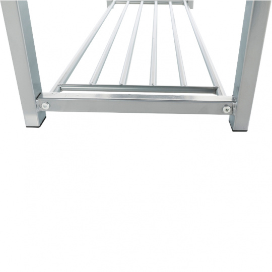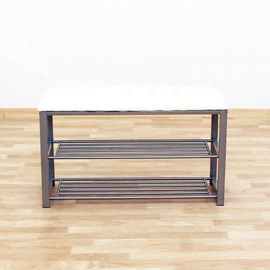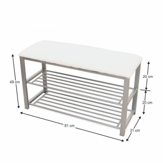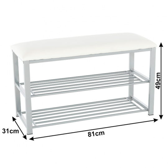 Botník BRESO Materiál: MDF / kov Provedení: bílá / stříbrná Rozměry (ŠxHxV): 100x30x37 cm Dodávané v demonte. Hmotnost: 3kg