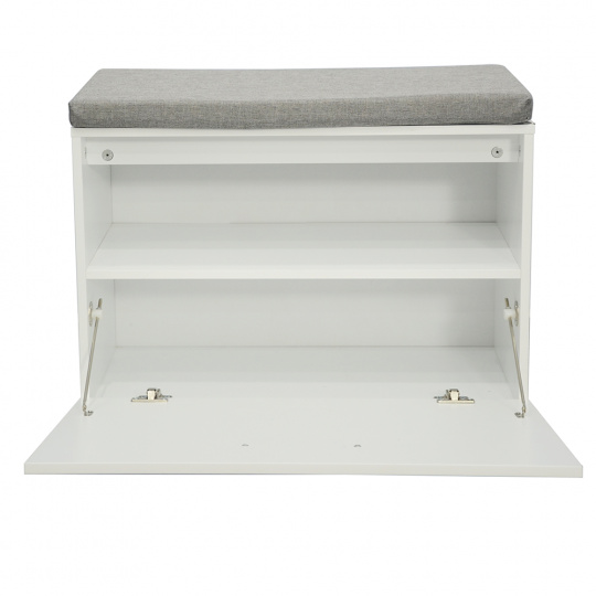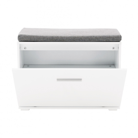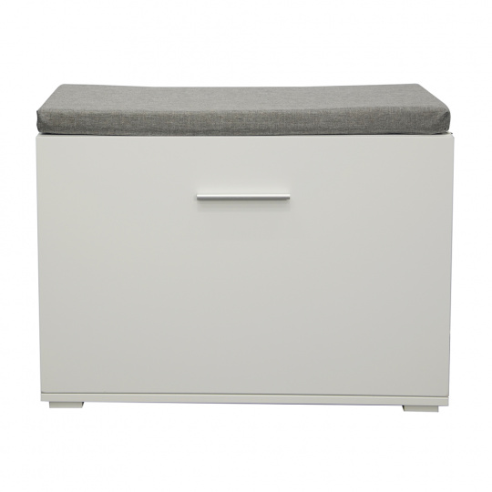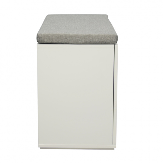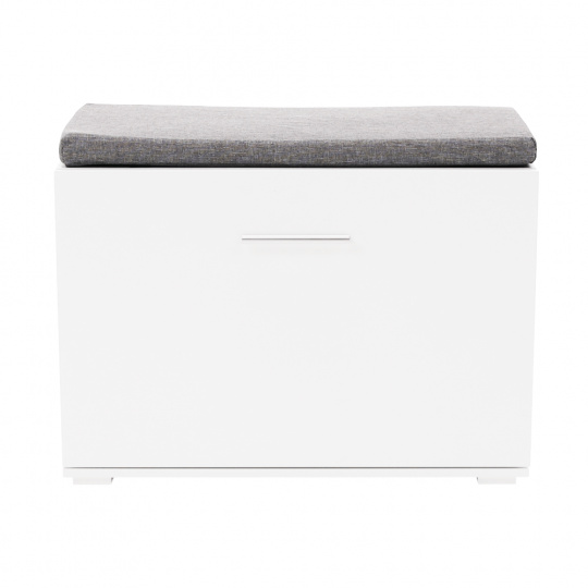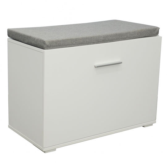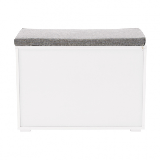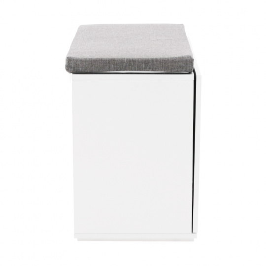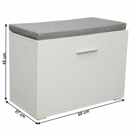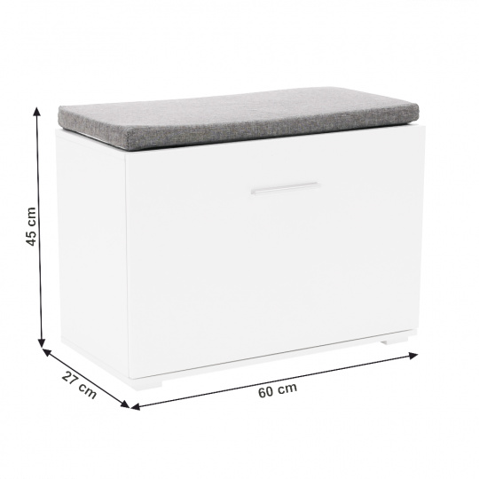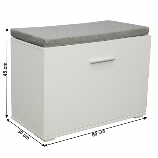 Materiál: MDF / látka Oděruodolnost textilie podle testu Martindale: 94 000 oděrek Barva: bílá / šedá Rozměry (ŠxHxV): 60x30x45 cm Hloubka vnitřní police: 27 cm S úložným prostorem S policí výklopná dvířka Stabilitu polštáře zajišťuje suchý zip Polštář se zipem Nosnost: 80 kg Dodávané v demontu