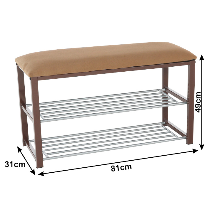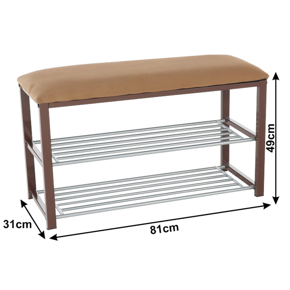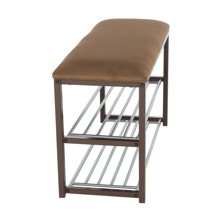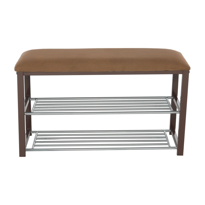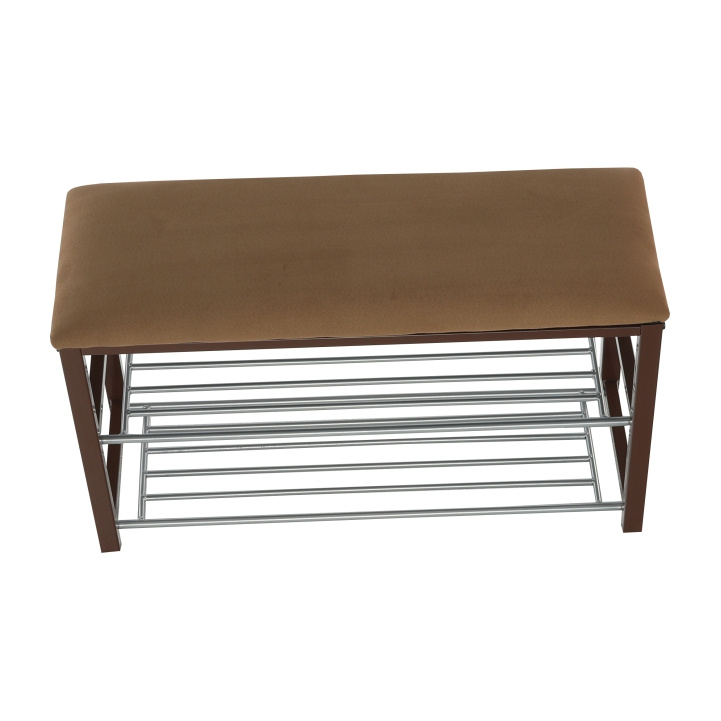 Lavice s botníkem Langella Barva: čokoládová / tmavohnědá Materiál: látka / kov Oděruodolnost textilie podle testu Martindale: 65 000 oděrek Rozměry (ŠxHxV): 81x31x49 cm Hmotnost: 5,8 kg Nosnost do 80 kg. Dodávané v demontu.