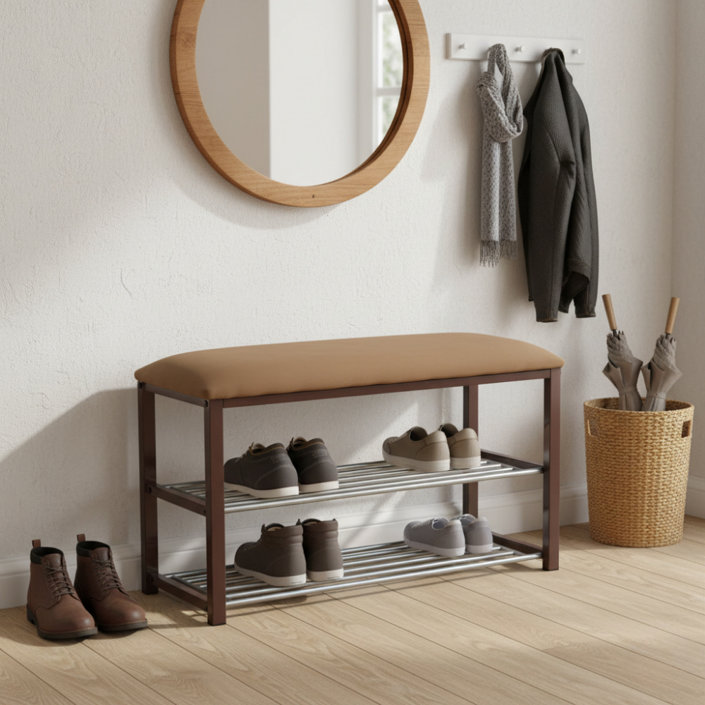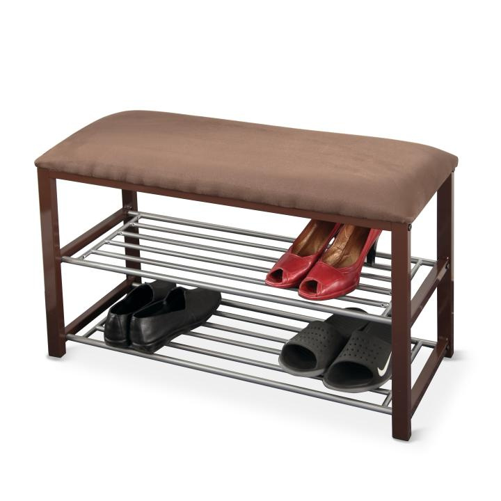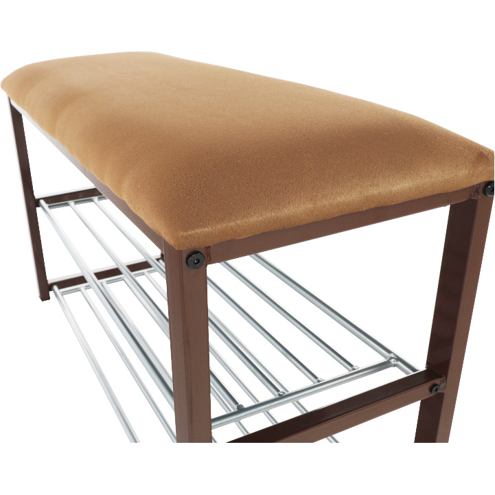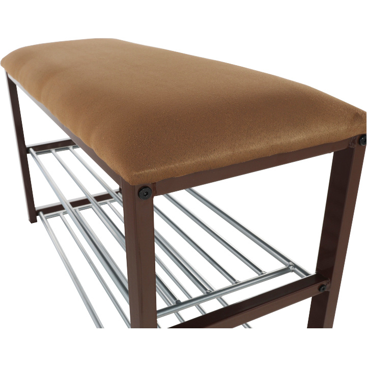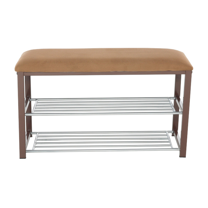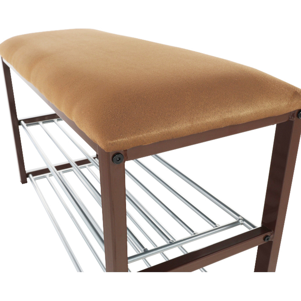 Lavice s botníkem Langella Barva: čokoládová / tmavohnědá Materiál: látka / kov Oděruodolnost textilie podle testu Martindale: 65 000 oděrek Rozměry (ŠxHxV): 81x31x49 cm Hmotnost: 5,8 kg Nosnost do 80 kg. Dodávané v demontu.