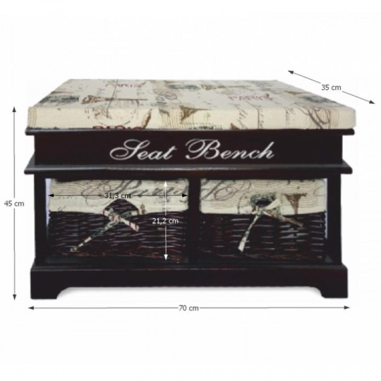 Praktická lavice s 2 zásuvkami SEAT BENCH 3 Barevné provedení: tmavohnědá Rozměry (ŠxHxV): 70x35x45 cm Nosnost: 60 kg Dodávané v monte.