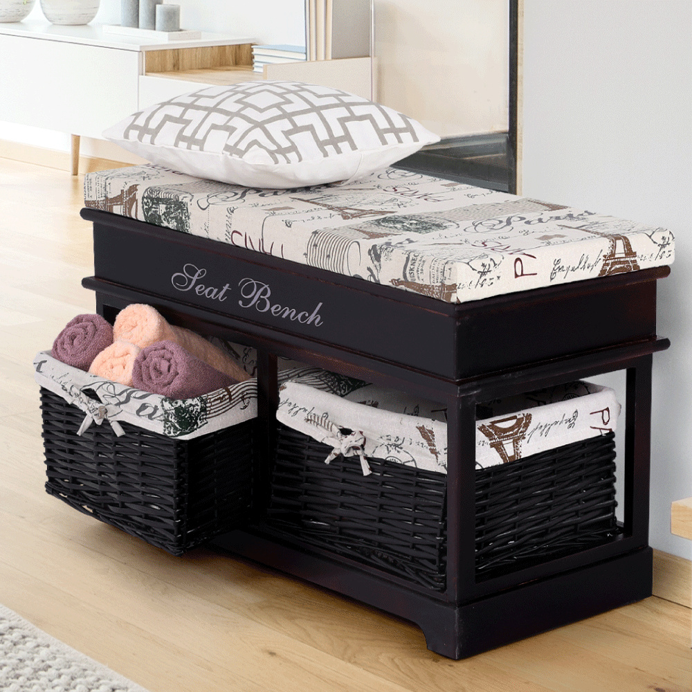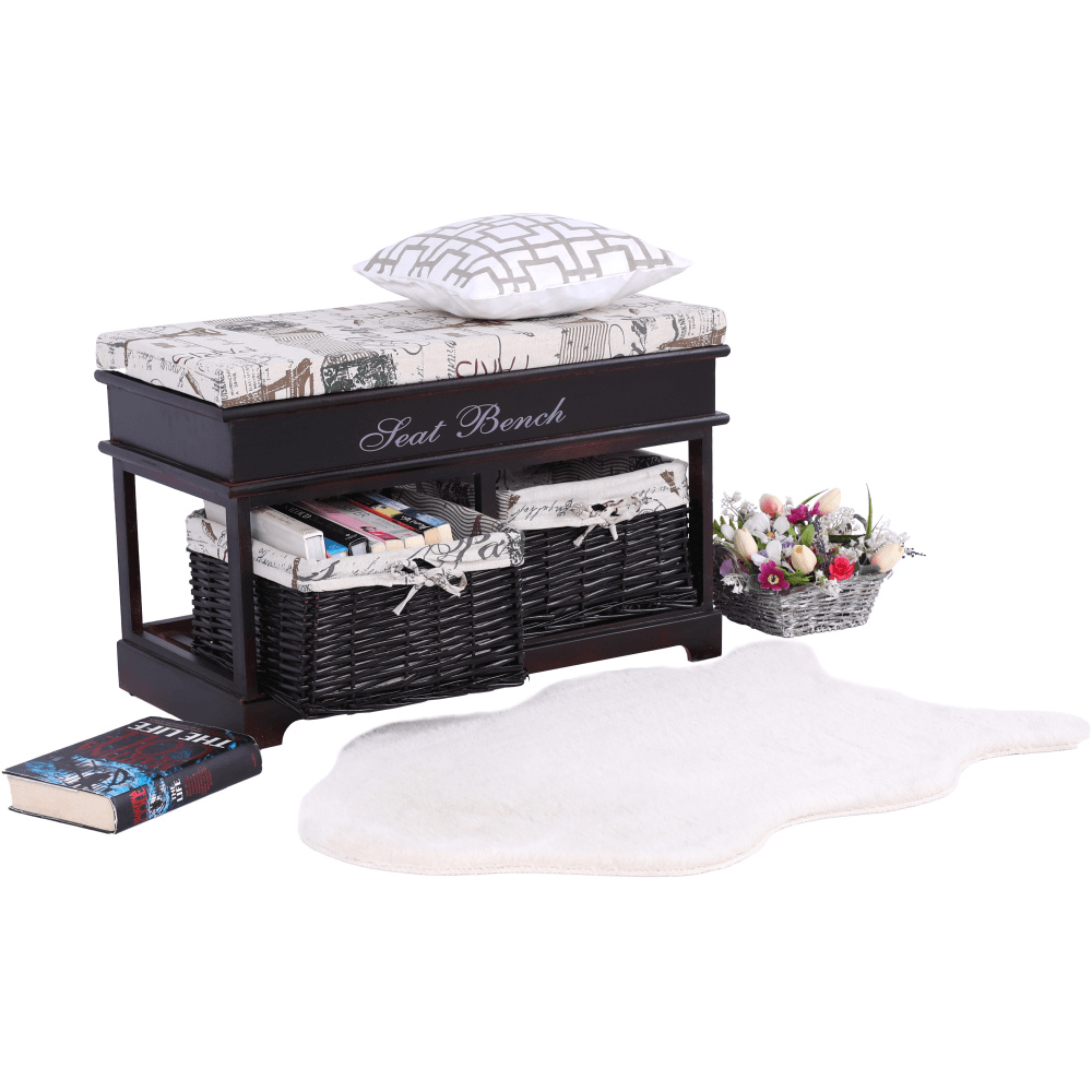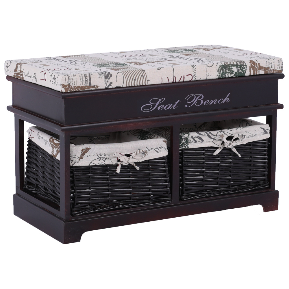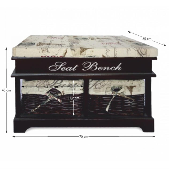 Praktická lavice s 2 zásuvkami SEAT BENCH 3 Barevné provedení: tmavohnědá Rozměry (ŠxHxV): 70x35x45 cm Nosnost: 60 kg Dodávané v monte.