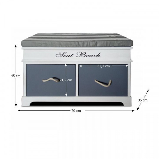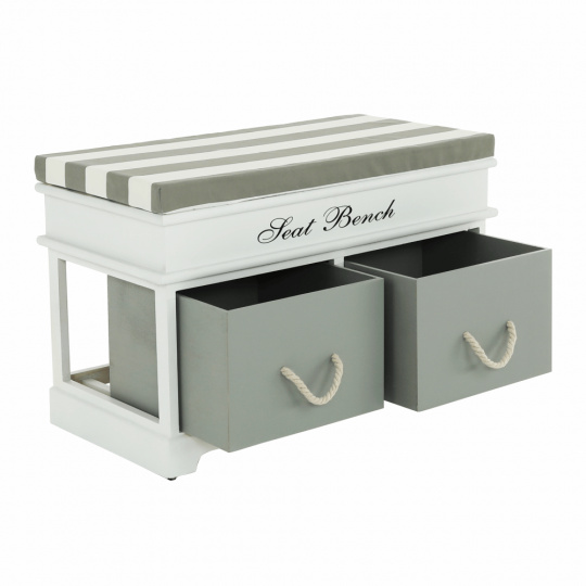Praktická lavice s 2 zásuvkami SEAT BENCH 2 NEW Barevné provedení bílá / šedá / tmavošedé Rozměry (ŠxHxV): 70x35x45 cm Nosnost: 60 kg Dodávané v monte.