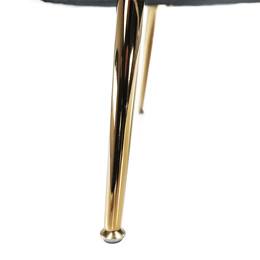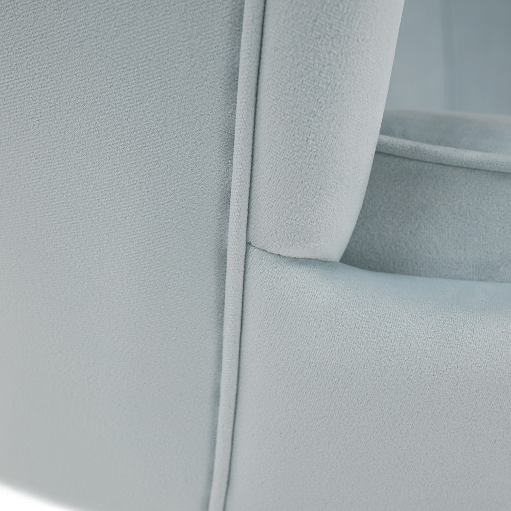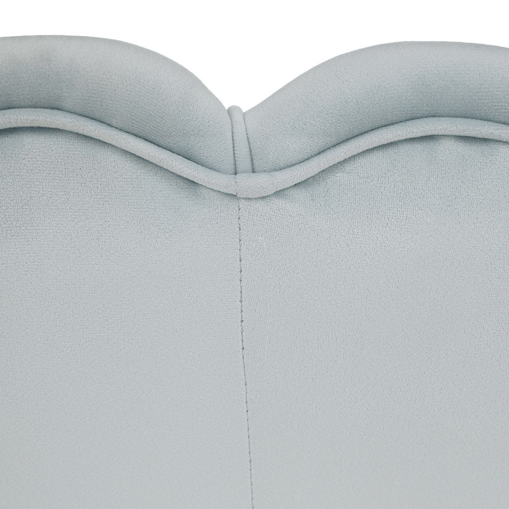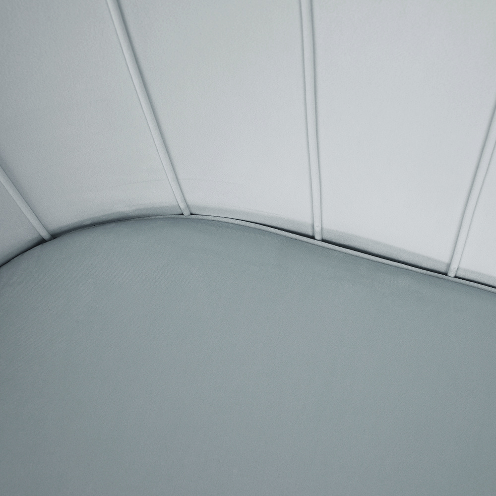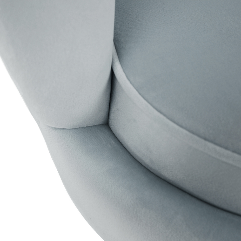 Materiál sedadlo: látka Velvet Oděruodolnost textilie podle testu Martindale: 80 000 oděrek Barva: šedomodrá Materiál nohy: kov Barva: gold chrom-zlatý Rozměry (ŠxHxV): 135x75x78 cm Výška sedu: 43 cm Hloubka sedu: 58 cm Nosnost: 180 kg Nohy zakončené ohebnými kluzáky na vyrovnání nerovnosti povrchu designová Ve stylu Art-deco Ve tvaru mušle moderně zpracovaná Dodávané v demontu