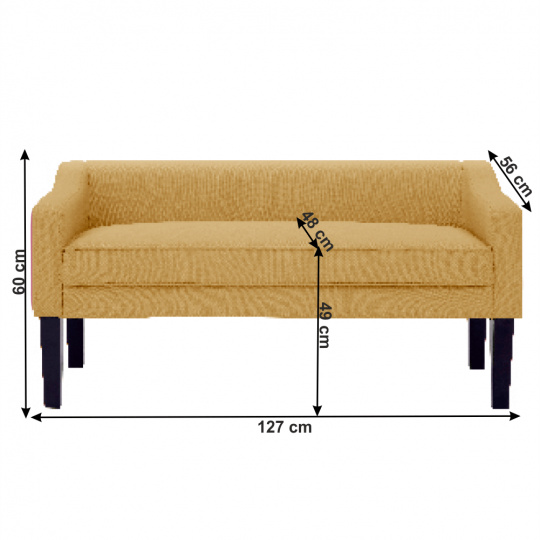 Materiál: látka / dřevo Oděruodolnost textilie podle testu Martindale: 90 000 oděrek Barva: žlutá / černá Rozměry (ŠxHxV): 127x56x60 cm Výška sedu: 49 cm Hloubka sedu: 48 cm Nosnost na osobu: 90 kg moderní vysokokvalitní pěna Dodávané v demontu