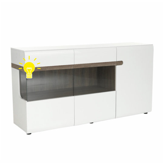 Komoda LYOK01, dub riviera / bílá s extra vysokým leskem, LEONARDO