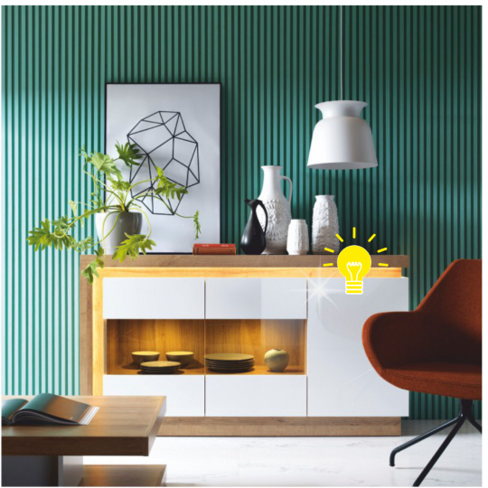 Komoda LYOV04L ze sektorové sestavy LEONARDO v provedení dub riviera / bílá s vysokým leskem. Rozměry (ŠxHxV): 107x42x124 cm Tloušťka materálu: 16 mm Systém tichého dorazu dvířek LED osvětlení po obvodu je v ceně Dodávané v demontu Hmotnost: 73kg