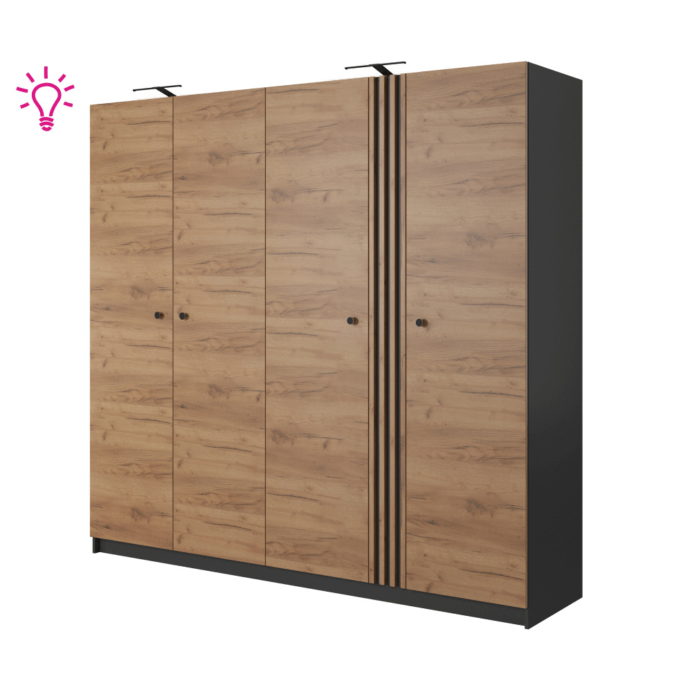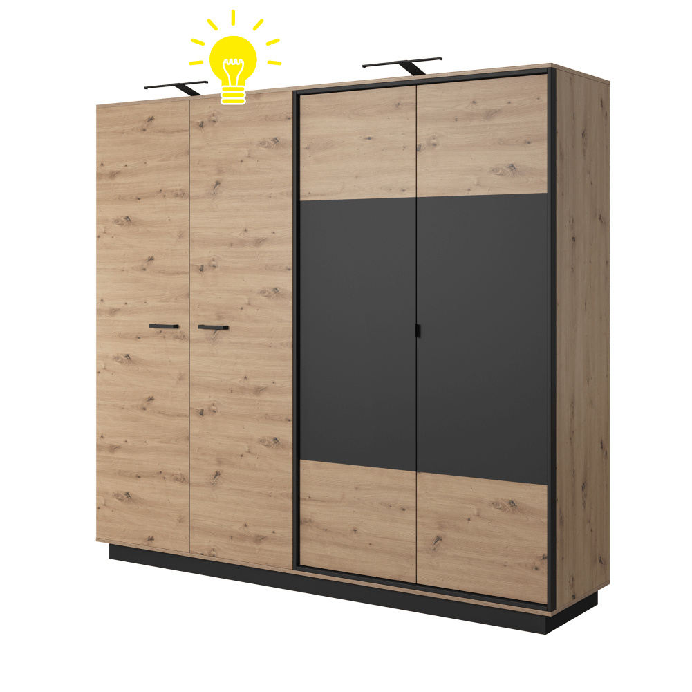 Materiál: DTD laminovaná / ABS hrany Barva: bílá / dub grandson / bílý lesk Rozměry (ŠxHxV): 220x54x202,4 cm Tloušťka materiálu: 16 mm bez úchytek Dotykové otevírání PUSH UP věšáková část S věšákovou tyčí dva šuplíky policová část S policemi se zrcadlem Dodávané v demontu Hmotnost: 171.6kg