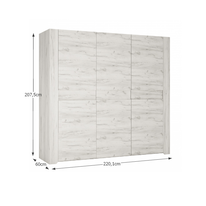 Materiál: laminovaná DTD Barva: bílá craft Skříň Rozměry (ŠxHxV): 220,1x60x207,5 cm 3dveřová Prostřední část obsahuje 5 polic Nosnost každé police: 5 kg Dvě věšákové části Postel Rozměry (ŠxHxV): 166,4x218x91,5 cm Plocha na spaní: 160x200 cm Noční stolek Rozměry (ŠxHxV): 49,1x40,2x37,6 cm Tloušťka materiálu: 16/28 mm Jedna otevřená police, jedna zásuvka Dodáváno v demontu