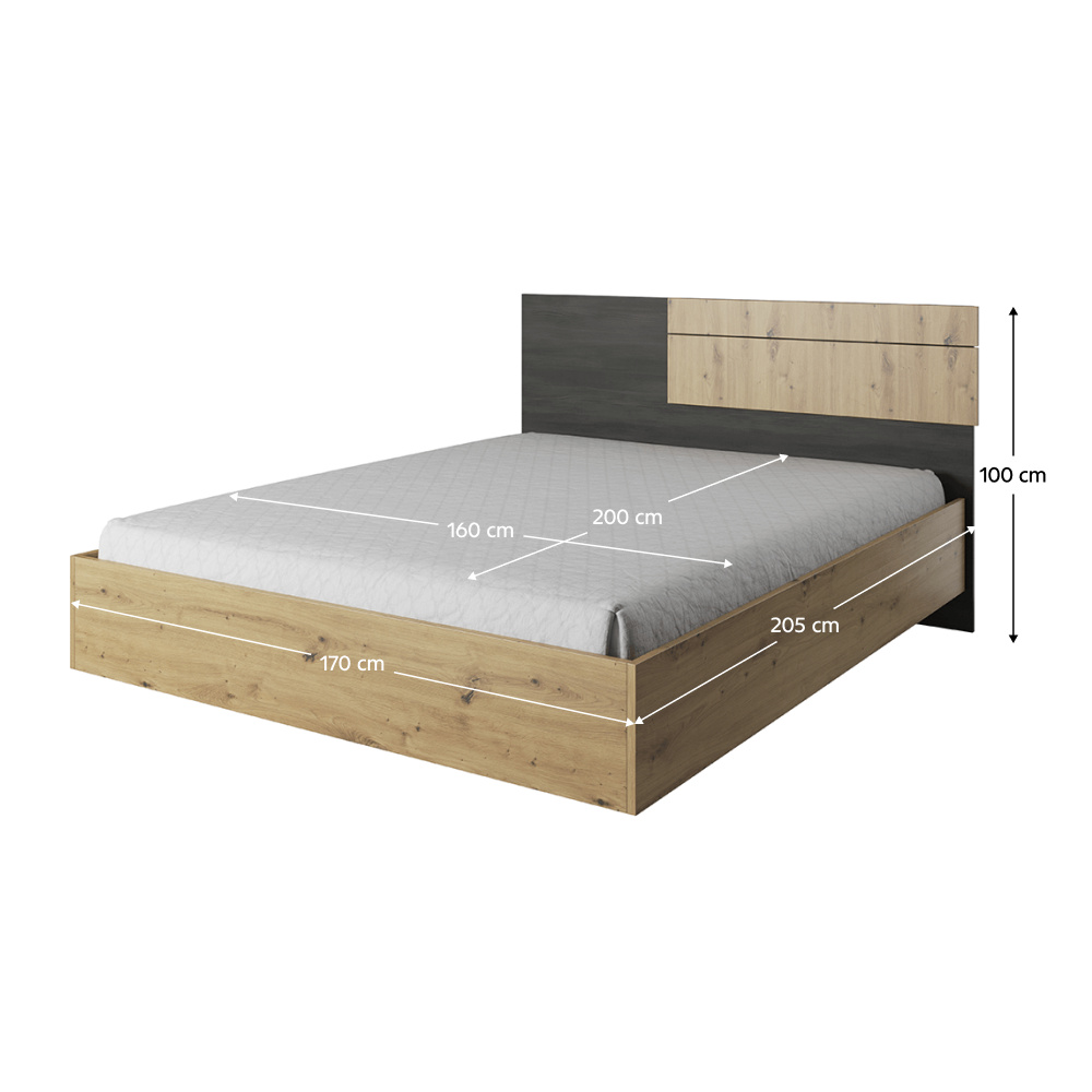 Ložnicová sestava (skříň+postel+2x noční stolek), dub artisan/černá borovice norská, BAFRA