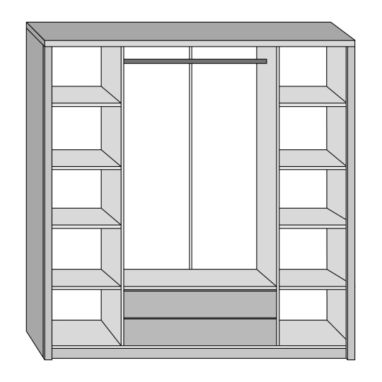 Materiál: laminovaná DTD Barva: sosna andersen/dub lefkas Skříň Rozměry (ŠxHxV): 171x53x198 cm 4-dveřová Jedna věšáková část Dvě policové části Dvě zásuvky Nosnost věšákové tyče: 10 kg Nosnost každé police: 7 kg Postel Rozměry (ŠxHxV): 165x205x100 cm Plocha na spaní: 160x200 cm Rošt je součástí balení Tloušťka materiálu postel: 22 mm Noční stolek Rozměry (ŠxHxV): 51x43x45 cm Tloušťka materiálu korpus: 15 mm Tloušťka materiálu horní desky: 36 mm Dodáváno v demontu