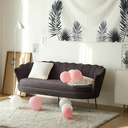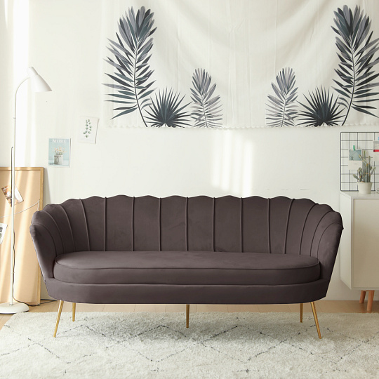 Materiál: látka Velvet/kov Oděruodolnost textilie podle testu Martindale: 80 000 oděrů Barva: šedohnědá/gold chrom zlatý Rozměry (ŠxHxV): 180x80x76 cm Výška sedu: 44,5 cm Hloubka sedu: 55 cm Šířka sedu: 150 cm Výška zádové opěrky: 33 cm Šířka zádové opěrky: 175 cm Nosnost: 250 kg Hmotnost: 25 kg Výplň: pěna Designové Ve stylu Art-deco Ve tvaru mušle Celočalouněné Dekorativní prošívání Dodáváno v demontu