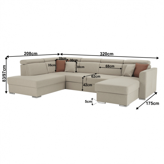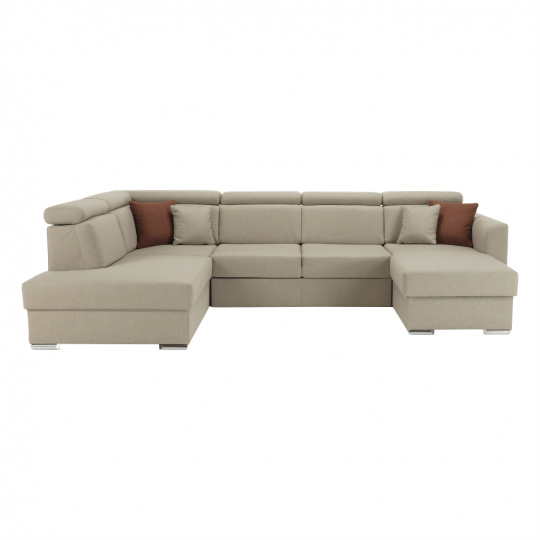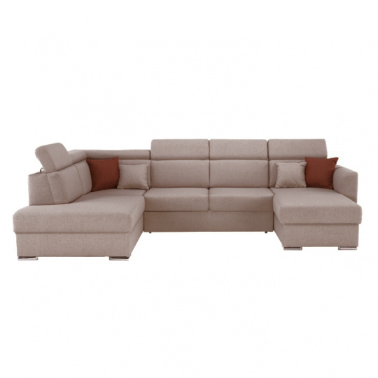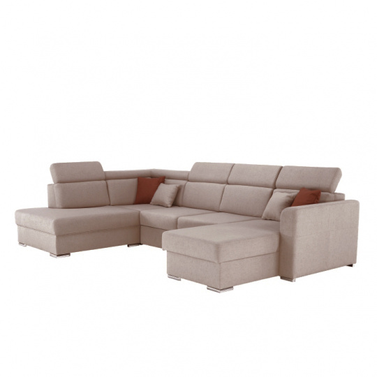 ;"Celočalouněná luxusní sedací souprava, levá, s rozkladem a úložným prostorem MARIETA U. Rozměry: (ŠxHxV): 320x208-175x83-97 cm, plocha na spaní (ŠxD): 130x260cm Nosnost na osobu: 90 kg Materiál: látka cable 02/05 Oděruodolnost textilie podle testu Martindale: 72 000 oděrek Barva: béžová 02 / cihlová 05 Dodávané s polštáři: 4 ks Výška spodního prostoru od podlahy: 5 cm 4 polohovací opěrky hlavy Dodávané v demontu. Nabízíme vám možnost složit si sedačku ve vlastním rozměru a podle vlastních potřeb. Komponenty na složení hledejte v naší nabídce. Máme pro vás hned sedm barev látky Cablo a sedm barev ekokůže, kombinovat tedy můžete dle libosti. Odstíny najdete v přiloženém vzorníku. Výběr barevného odstínu poznamenejte při objednávání přímo do poznámky. Při individuální objednávce je třeba zaplatit 20% zálohu z dané částky. Po uhrazení zálohy bude Váš požadavek zadána do výroby. Doba dodání 6-8 týdnů. Cena takto složené sedačky v jiné barvě závisí na počtu jednotlivých dílů, které ji tvoří. Doporučujeme prověřit si konečnou cenu na e-mail adrese nakup@tempo-kondela.sk.