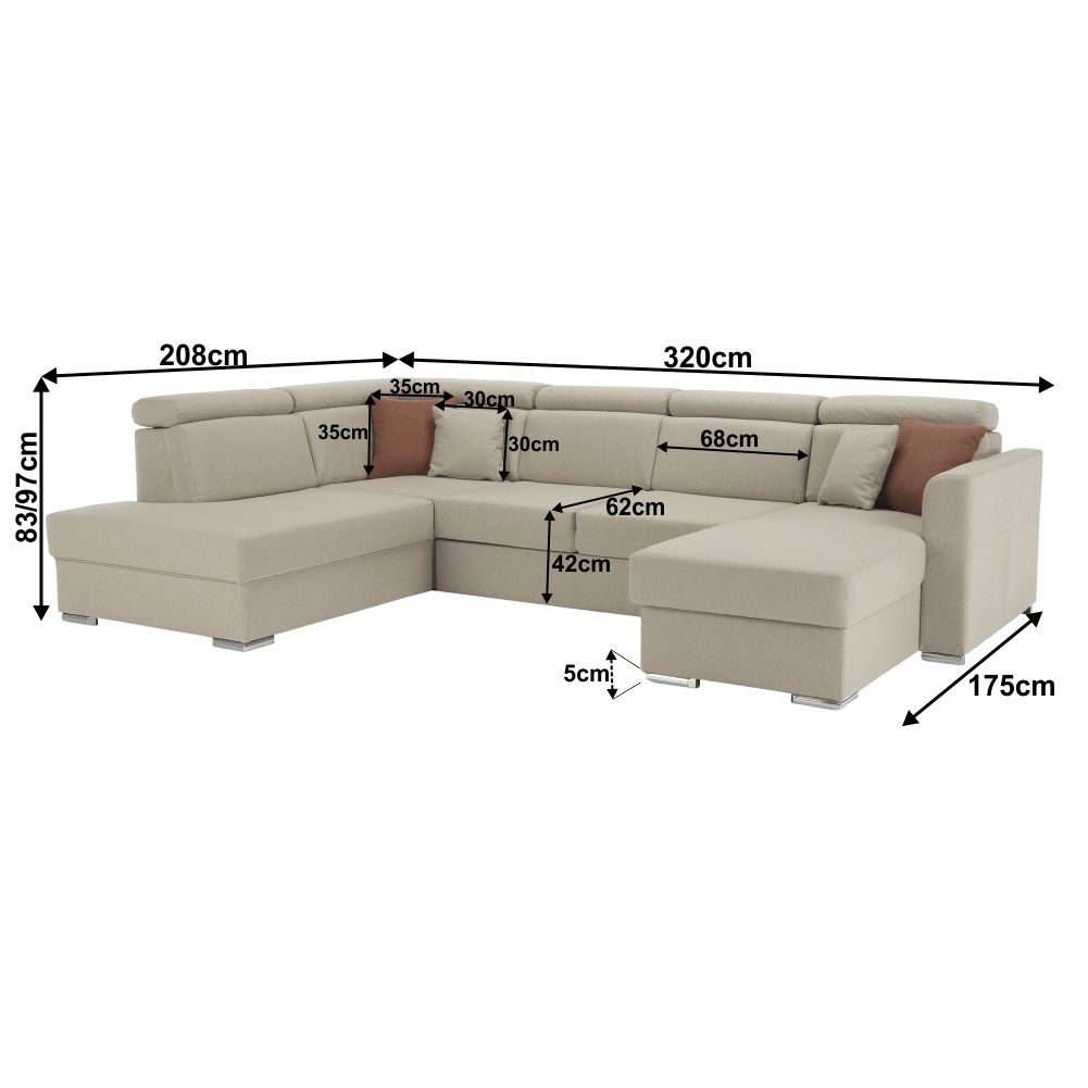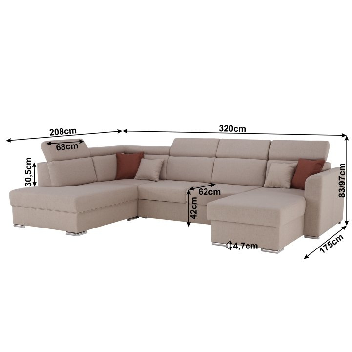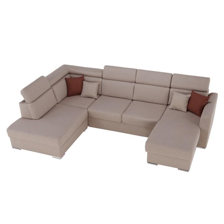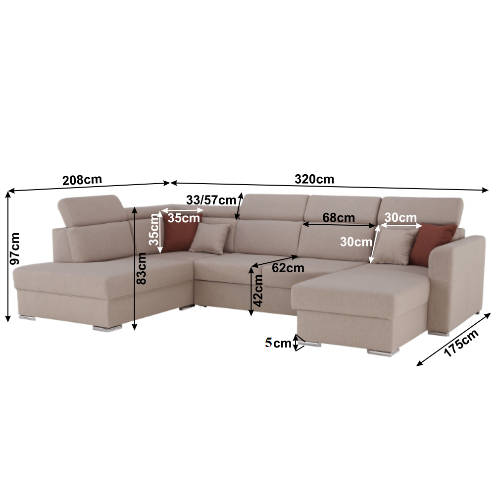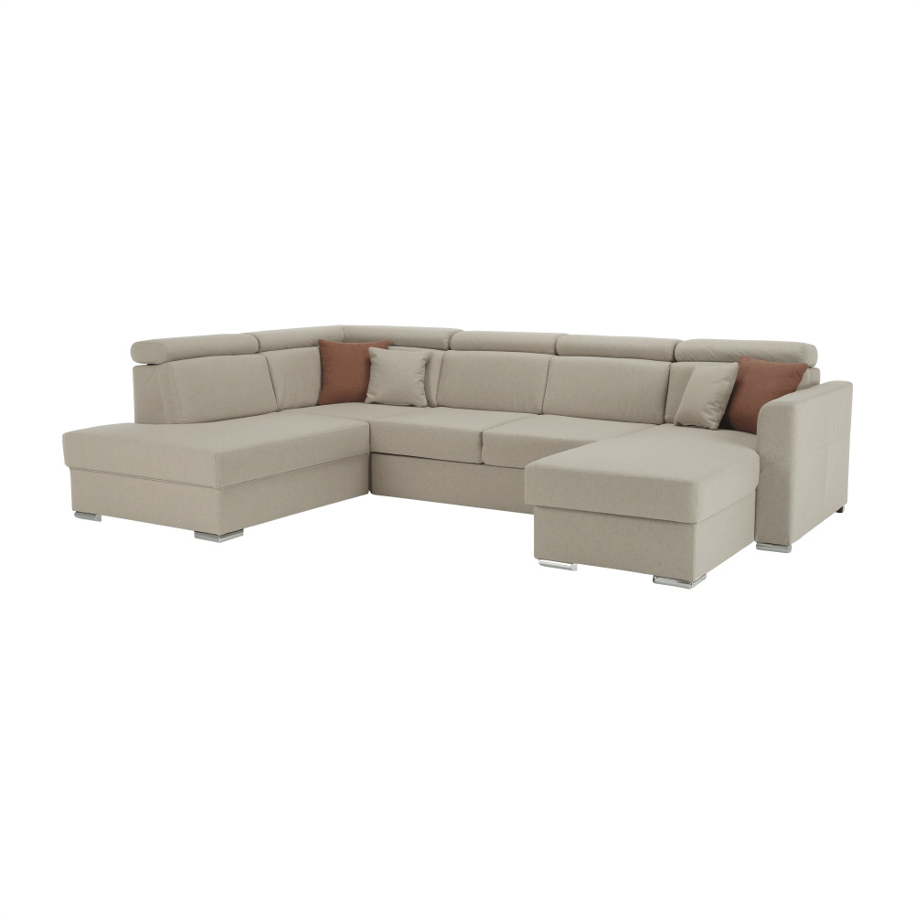 ;"Celočalouněná luxusní sedací souprava, levá, s rozkladem a úložným prostorem MARIETA U. Rozměry: (ŠxHxV): 320x208-175x83-97 cm, plocha na spaní (ŠxD): 130x260cm Nosnost na osobu: 90 kg Materiál: látka cable 02/05 Oděruodolnost textilie podle testu Martindale: 72 000 oděrek Barva: béžová 02 / cihlová 05 Dodávané s polštáři: 4 ks Výška spodního prostoru od podlahy: 5 cm 4 polohovací opěrky hlavy Dodávané v demontu. Nabízíme vám možnost složit si sedačku ve vlastním rozměru a podle vlastních potřeb. Komponenty na složení hledejte v naší nabídce. Máme pro vás hned sedm barev látky Cablo a sedm barev ekokůže, kombinovat tedy můžete dle libosti. Odstíny najdete v přiloženém vzorníku. Výběr barevného odstínu poznamenejte při objednávání přímo do poznámky. Při individuální objednávce je třeba zaplatit 20% zálohu z dané částky. Po uhrazení zálohy bude Váš požadavek zadána do výroby. Doba dodání 6-8 týdnů. Cena takto složené sedačky v jiné barvě závisí na počtu jednotlivých dílů, které ji tvoří. Doporučujeme prověřit si konečnou cenu na e-mail adrese nakup@tempo-kondela.sk.