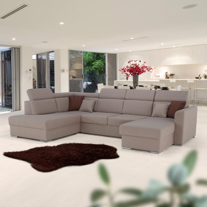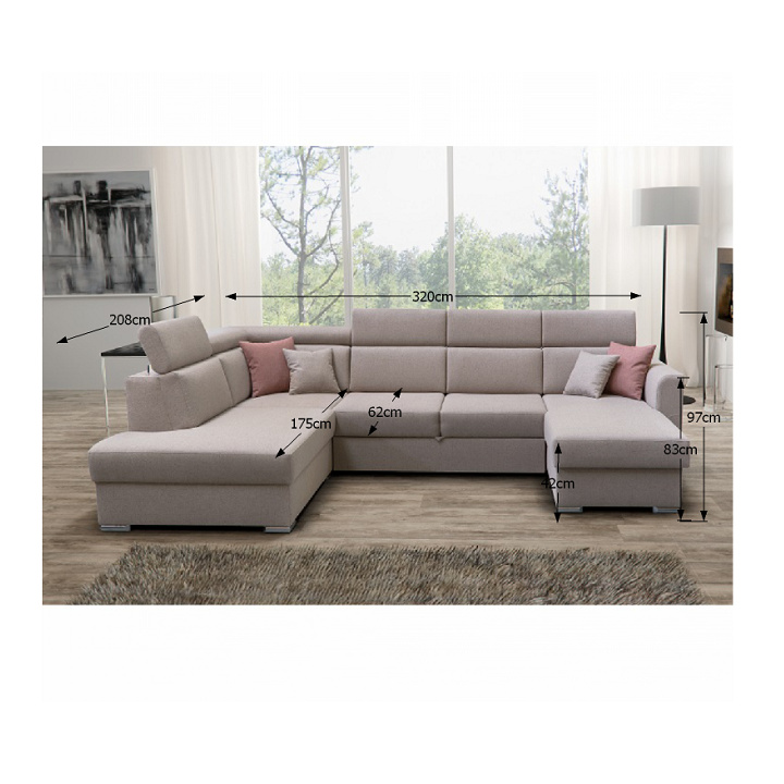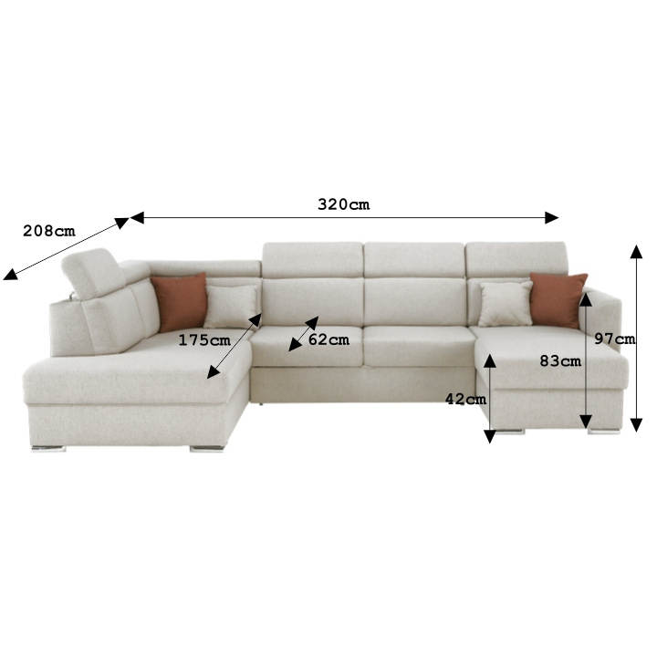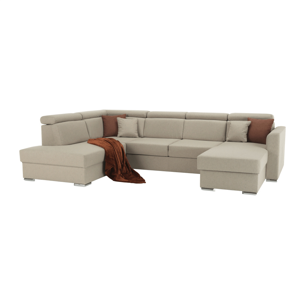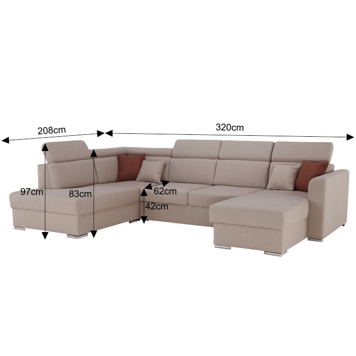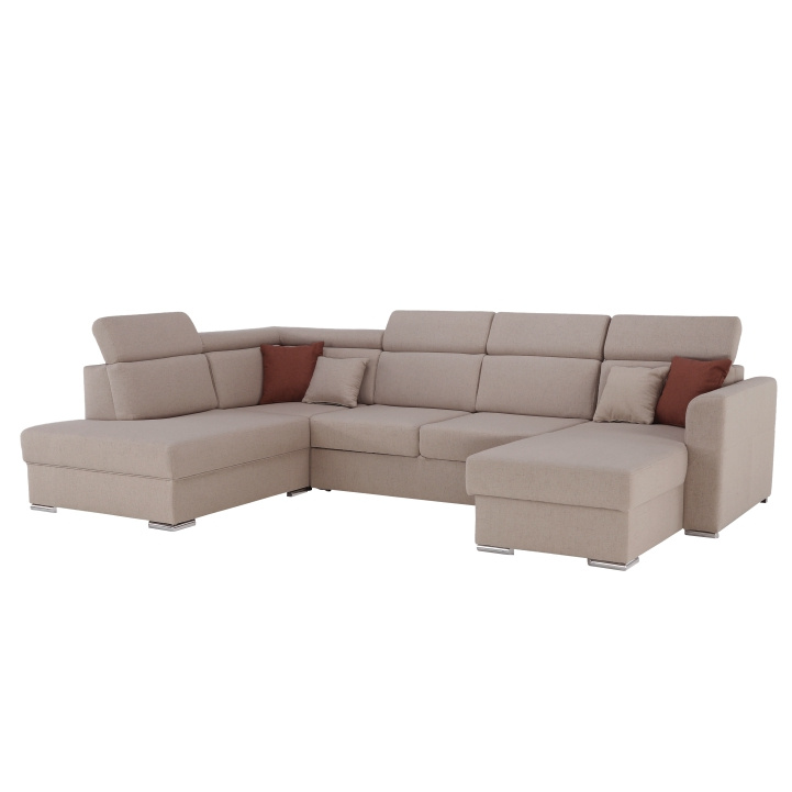 ;"Celočalouněná luxusní sedací souprava, levá, s rozkladem a úložným prostorem MARIETA U. Rozměry: (ŠxHxV): 320x208-175x83-97 cm, plocha na spaní (ŠxD): 130x260cm Nosnost na osobu: 90 kg Materiál: látka cable 02/05 Oděruodolnost textilie podle testu Martindale: 72 000 oděrek Barva: béžová 02 / cihlová 05 Dodávané s polštáři: 4 ks Výška spodního prostoru od podlahy: 5 cm 4 polohovací opěrky hlavy Dodávané v demontu. Nabízíme vám možnost složit si sedačku ve vlastním rozměru a podle vlastních potřeb. Komponenty na složení hledejte v naší nabídce. Máme pro vás hned sedm barev látky Cablo a sedm barev ekokůže, kombinovat tedy můžete dle libosti. Odstíny najdete v přiloženém vzorníku. Výběr barevného odstínu poznamenejte při objednávání přímo do poznámky. Při individuální objednávce je třeba zaplatit 20% zálohu z dané částky. Po uhrazení zálohy bude Váš požadavek zadána do výroby. Doba dodání 6-8 týdnů. Cena takto složené sedačky v jiné barvě závisí na počtu jednotlivých dílů, které ji tvoří. Doporučujeme prověřit si konečnou cenu na e-mail adrese nakup@tempo-kondela.sk.