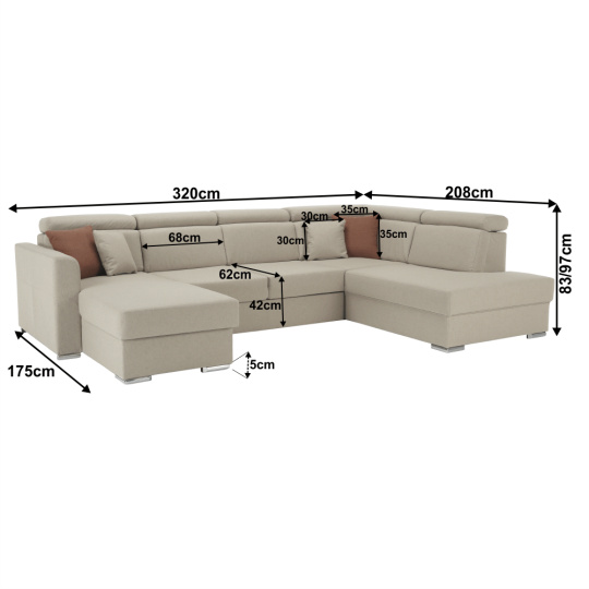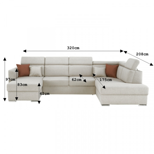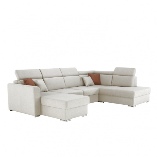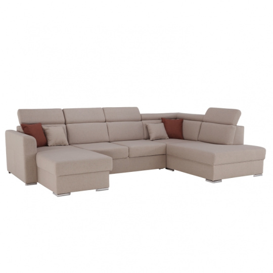;"Celočalouněná luxusní sedací souprava s rozkladem a úložným prostorem MARIETA U. Rozměry: (ŠxHxV): 320x208-175x83-97 cm, plocha na spaní (ŠxD): 130x260cm Nosnost na osobu: 90 kg Materiál: látka cable 02/05 Oděruodolnost textilie podle testu Martindale: 72 000 oděrek Barva: béžová 02 / cihlová 05 Dodávané s polštáři: 4 ks Výška spodního prostoru od podlahy: 5 cm 4 polohovací opěrky hlavy Dodávané v demontu. Nabízíme vám možnost složit si sedačku ve vlastním rozměru a podle vlastních potřeb. Komponenty na složení hledejte v naší nabídce. Máme pro vás hned sedm barev látky Cablo a sedm barev ekokůže, kombinovat tedy můžete dle libosti. Odstíny najdete v přiloženém vzorníku. Výběr barevného odstínu poznamenejte při objednávání přímo do poznámky. Při individuální objednávce je třeba zaplatit 20% zálohu z dané částky. Po uhrazení zálohy bude Váš požadavek zadána do výroby. Doba dodání 6-8 týdnů. Cena takto složené sedačky v jiné barvě závisí na počtu jednotlivých dílů, které ji tvoří. Doporučujeme prověřit si konečnou cenu na e-mail adrese nakup@tempo-kondela.sk.