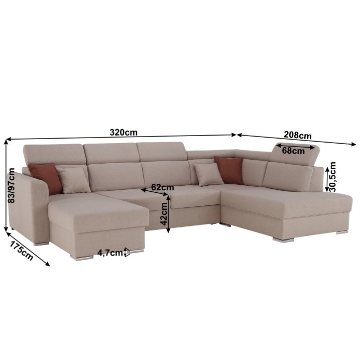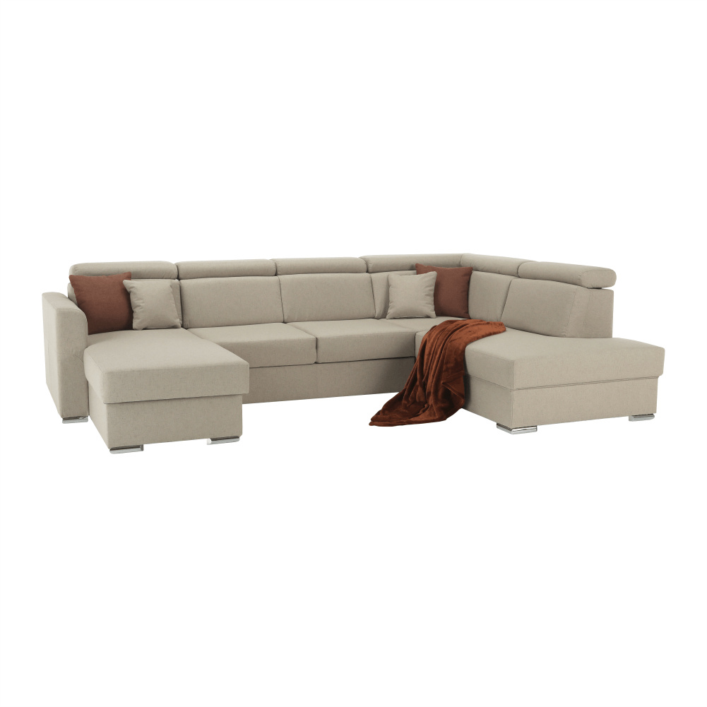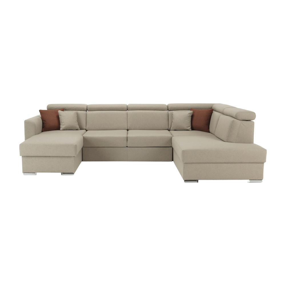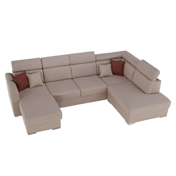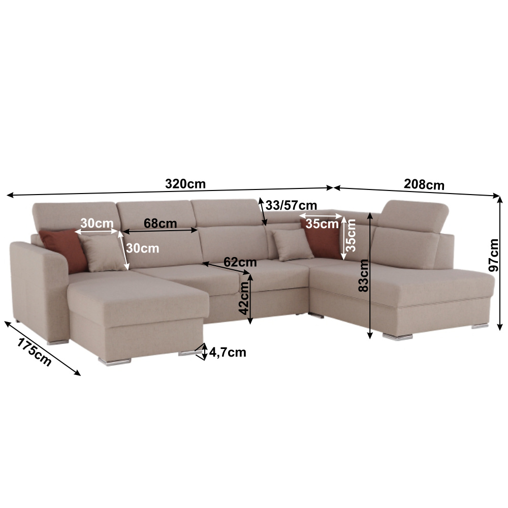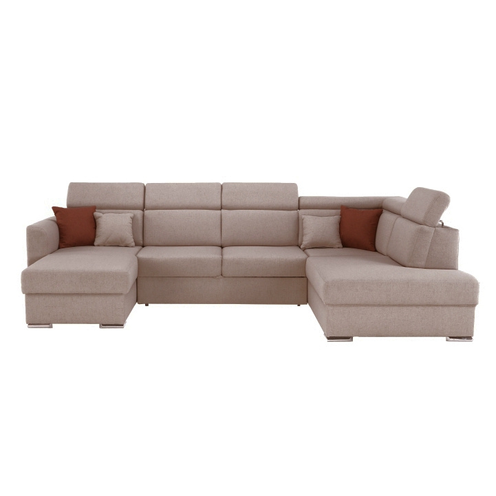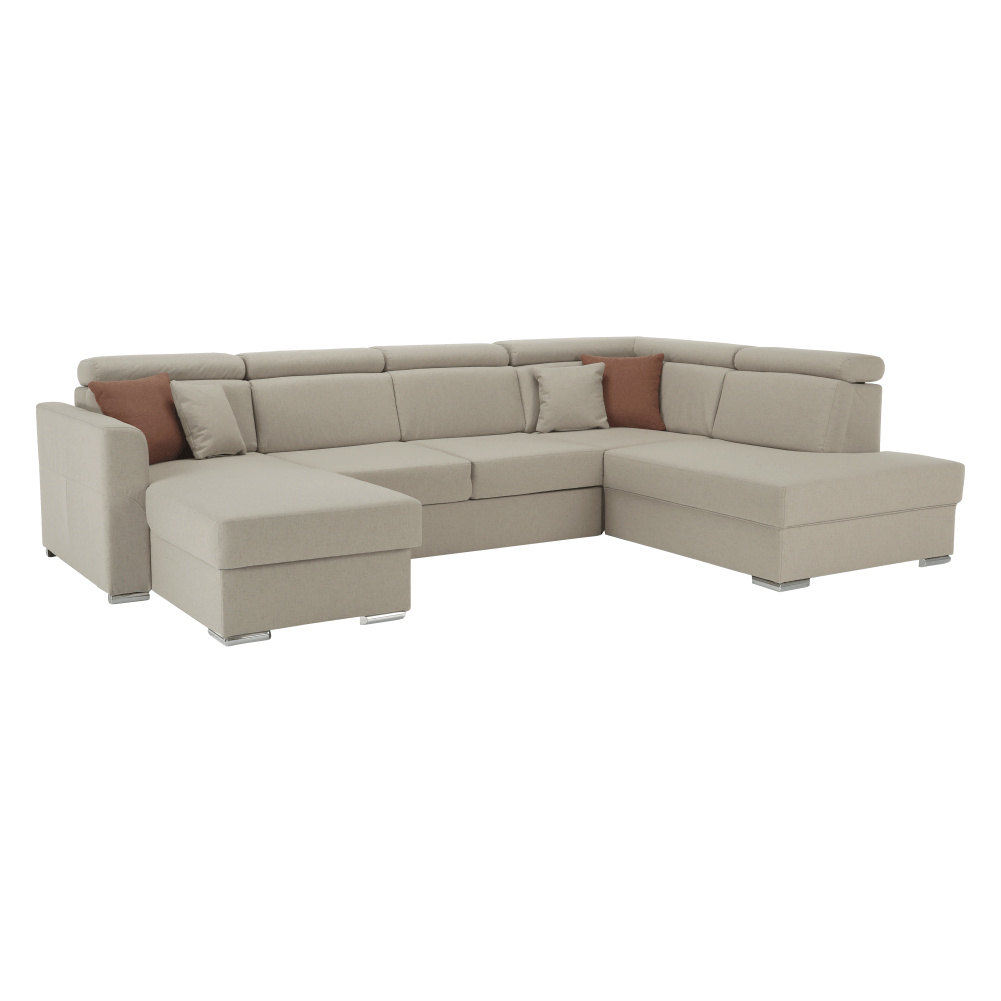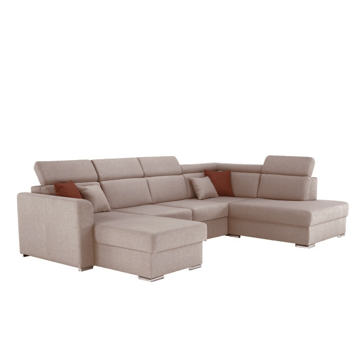 ;"Celočalouněná luxusní sedací souprava s rozkladem a úložným prostorem MARIETA U. Rozměry: (ŠxHxV): 320x208-175x83-97 cm, plocha na spaní (ŠxD): 130x260cm Nosnost na osobu: 90 kg Materiál: látka cable 02/05 Oděruodolnost textilie podle testu Martindale: 72 000 oděrek Barva: béžová 02 / cihlová 05 Dodávané s polštáři: 4 ks Výška spodního prostoru od podlahy: 5 cm 4 polohovací opěrky hlavy Dodávané v demontu. Nabízíme vám možnost složit si sedačku ve vlastním rozměru a podle vlastních potřeb. Komponenty na složení hledejte v naší nabídce. Máme pro vás hned sedm barev látky Cablo a sedm barev ekokůže, kombinovat tedy můžete dle libosti. Odstíny najdete v přiloženém vzorníku. Výběr barevného odstínu poznamenejte při objednávání přímo do poznámky. Při individuální objednávce je třeba zaplatit 20% zálohu z dané částky. Po uhrazení zálohy bude Váš požadavek zadána do výroby. Doba dodání 6-8 týdnů. Cena takto složené sedačky v jiné barvě závisí na počtu jednotlivých dílů, které ji tvoří. Doporučujeme prověřit si konečnou cenu na e-mail adrese nakup@tempo-kondela.sk.