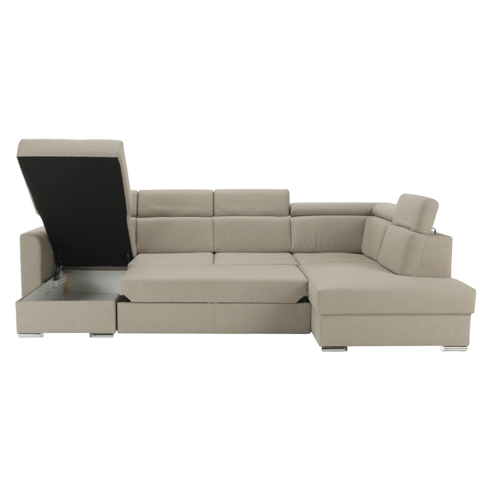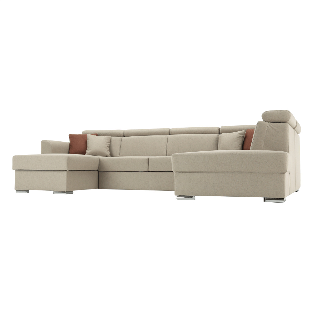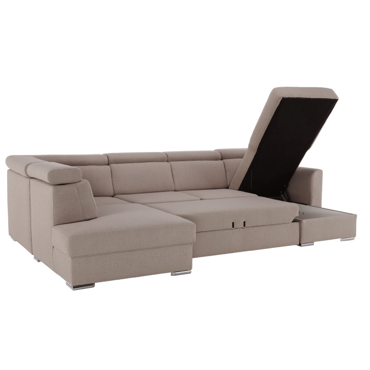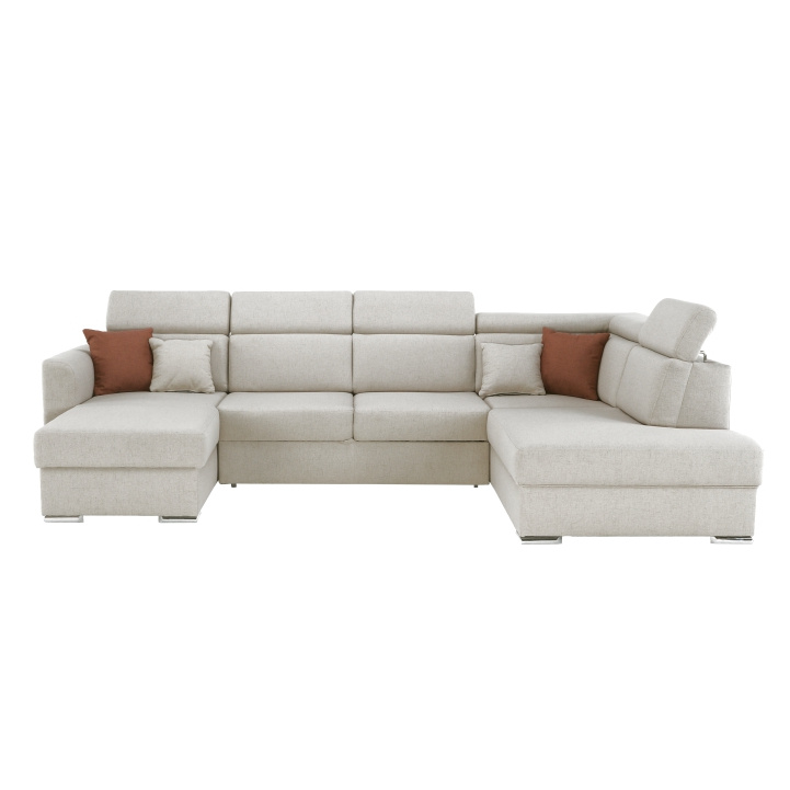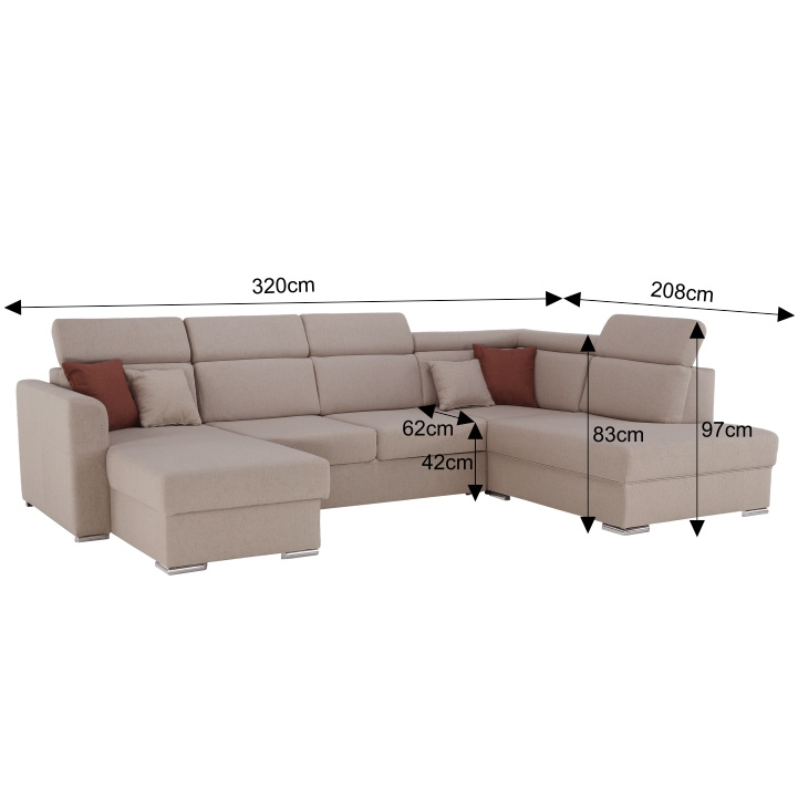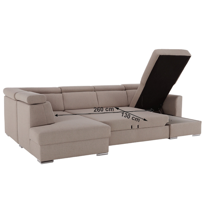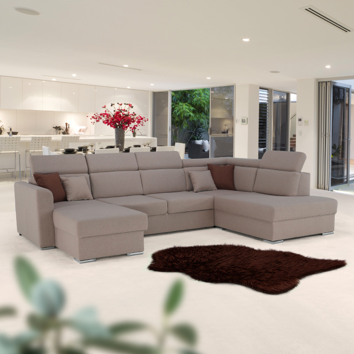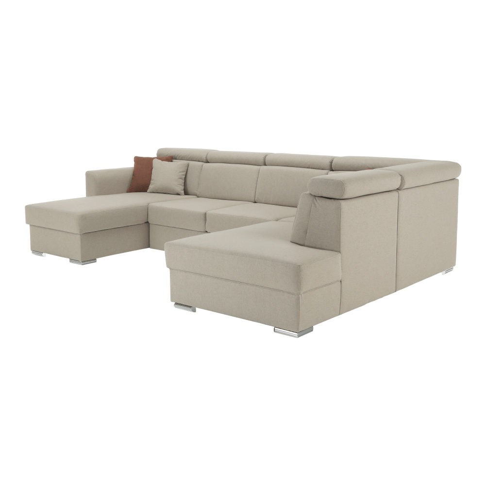 ;"Celočalouněná luxusní sedací souprava s rozkladem a úložným prostorem MARIETA U. Rozměry: (ŠxHxV): 320x208-175x83-97 cm, plocha na spaní (ŠxD): 130x260cm Nosnost na osobu: 90 kg Materiál: látka cable 02/05 Oděruodolnost textilie podle testu Martindale: 72 000 oděrek Barva: béžová 02 / cihlová 05 Dodávané s polštáři: 4 ks Výška spodního prostoru od podlahy: 5 cm 4 polohovací opěrky hlavy Dodávané v demontu. Nabízíme vám možnost složit si sedačku ve vlastním rozměru a podle vlastních potřeb. Komponenty na složení hledejte v naší nabídce. Máme pro vás hned sedm barev látky Cablo a sedm barev ekokůže, kombinovat tedy můžete dle libosti. Odstíny najdete v přiloženém vzorníku. Výběr barevného odstínu poznamenejte při objednávání přímo do poznámky. Při individuální objednávce je třeba zaplatit 20% zálohu z dané částky. Po uhrazení zálohy bude Váš požadavek zadána do výroby. Doba dodání 6-8 týdnů. Cena takto složené sedačky v jiné barvě závisí na počtu jednotlivých dílů, které ji tvoří. Doporučujeme prověřit si konečnou cenu na e-mail adrese nakup@tempo-kondela.sk.