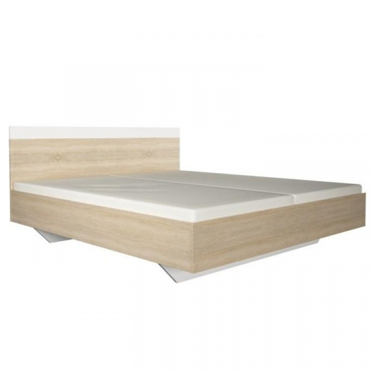 Postel, 180x200, Materiál: DTD laminovaná Barva: dub sonoma / bílá Rozměry (ŠxHxV): 183,6x203,2x90 cm Tloušťka materiálu: 16/22 mm Výška matrace: 15 cm Nosnost: 110 kg Postel dodávána bez roštu a matrace. Možnost dokoupit matraci a rošt v pevném rámu K posteli doporučujeme zakoupit rošt Monna a matraci s rozměrem 180x200 cm z naší nabídky. Dodávané v demontu.