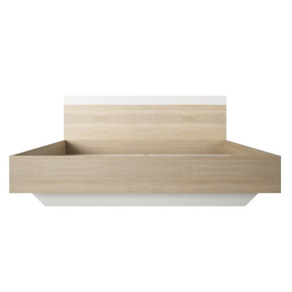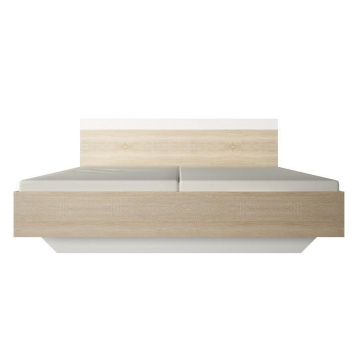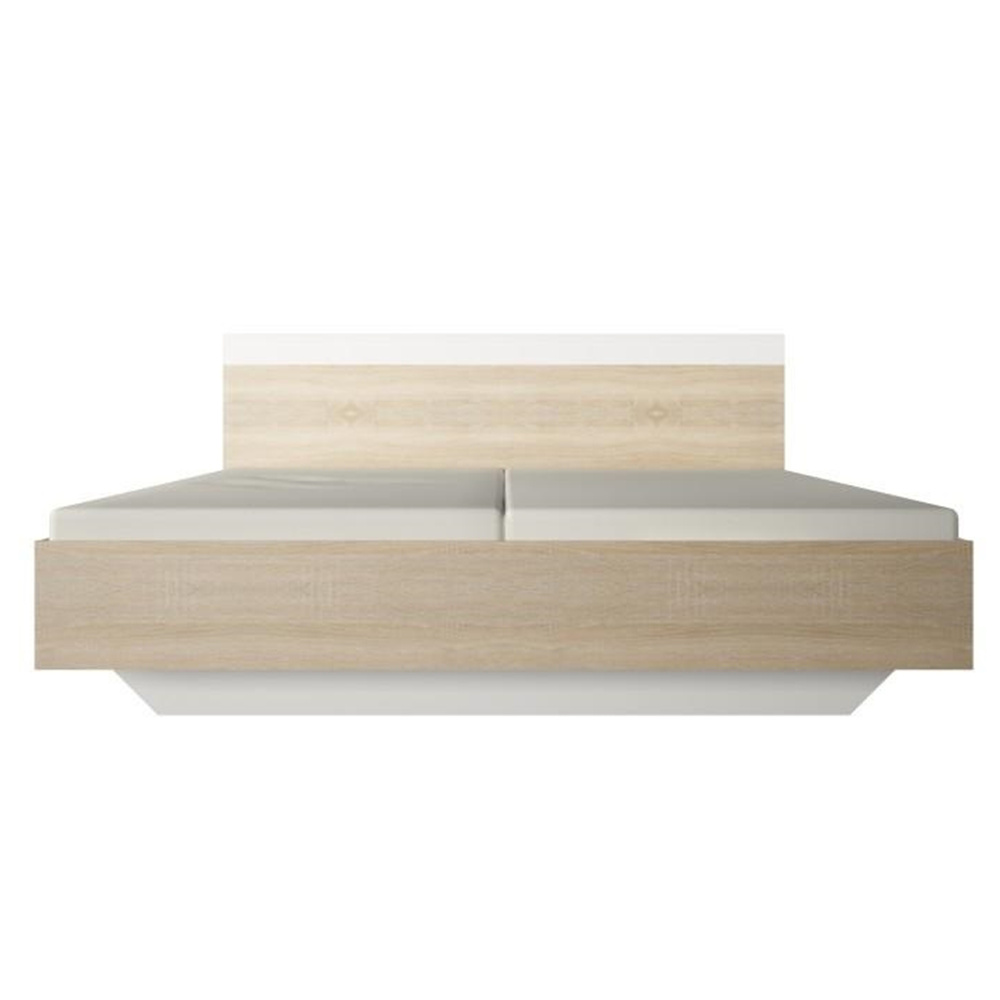 Postel, 180x200, Materiál: DTD laminovaná Barva: dub sonoma / bílá Rozměry (ŠxHxV): 183,6x203,2x90 cm Tloušťka materiálu: 16/22 mm Výška matrace: 15 cm Nosnost: 110 kg Postel dodávána bez roštu a matrace. Možnost dokoupit matraci a rošt v pevném rámu K posteli doporučujeme zakoupit rošt Monna a matraci s rozměrem 180x200 cm z naší nabídky. Dodávané v demontu.