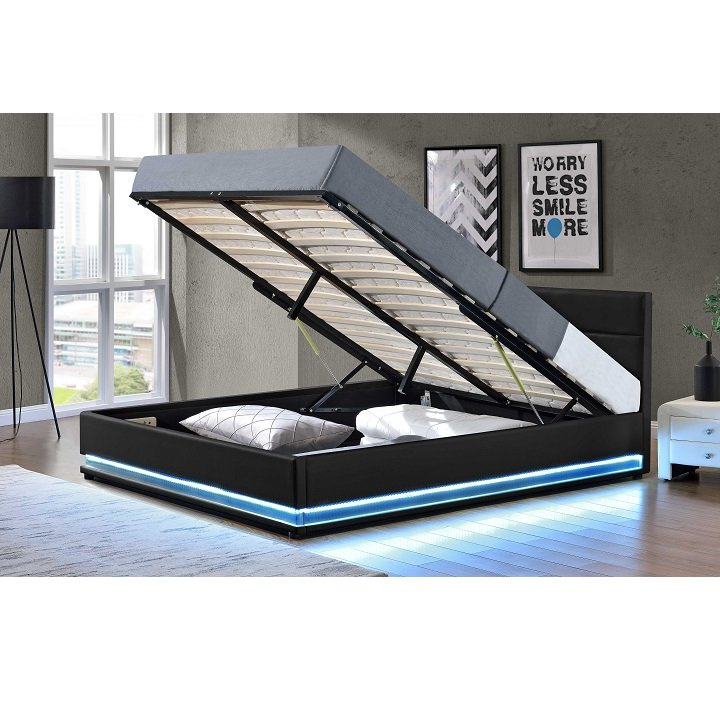 Manželská postel s bílým osvětlením, černá, 180x200, BIRGET NEW