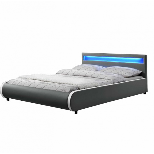 Manželská postel s RGB LED osvětlení,, šedá ekokůže, 160x200, DULCEA