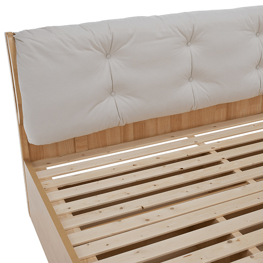 Materiál: látka/kaučukové dřevo/novozélandská borovice Oděruodolnost textilie podle testu Martindale: 10 000 oděrů Barva: přírodní Rozměry (ŠxHxV): 161x208,8x98 cm Plocha na spaní (ŠxD): 160x200 cm Nosnost na osobu: 150 kg Výška bočnice: 35 cm Výška po rošt: 33 cm Úložný prostor 5 odkládacích ploch Výška úložného prostoru: 24 cm Dodávána s laťkovým roštem Vyklápěcí rošt Tloušťka lamel: 1,4 cm Dodáváno bez matrace Doporučená výška matrace: 10-15 cm Prostor mezi roštem a čalouněním (opěrkou): 15 cm Možnost zakoupit matraci o rozměru 160x200 cm Moderní design Dodáváno v demontu
