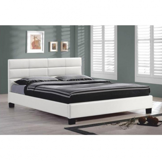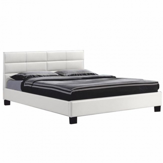Manželská postel s roštem, 160x200, bílá ekokůže, MIKEL