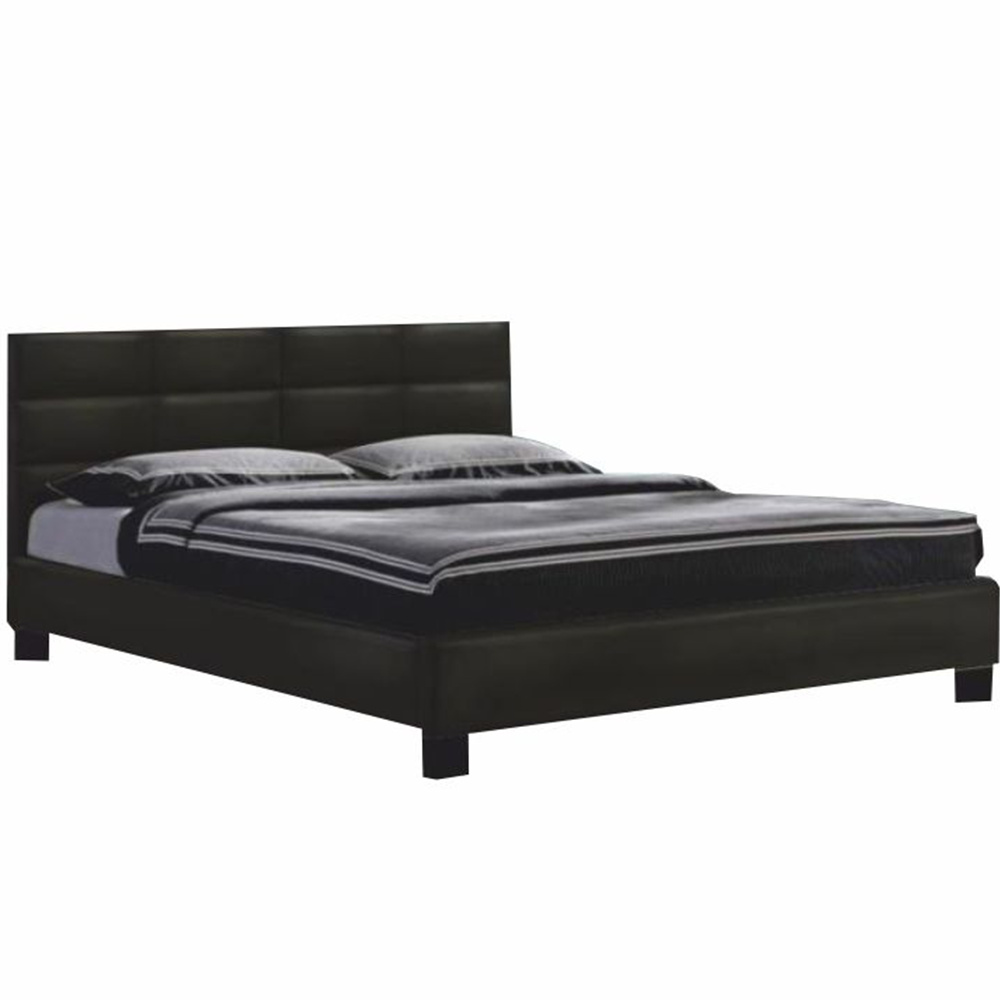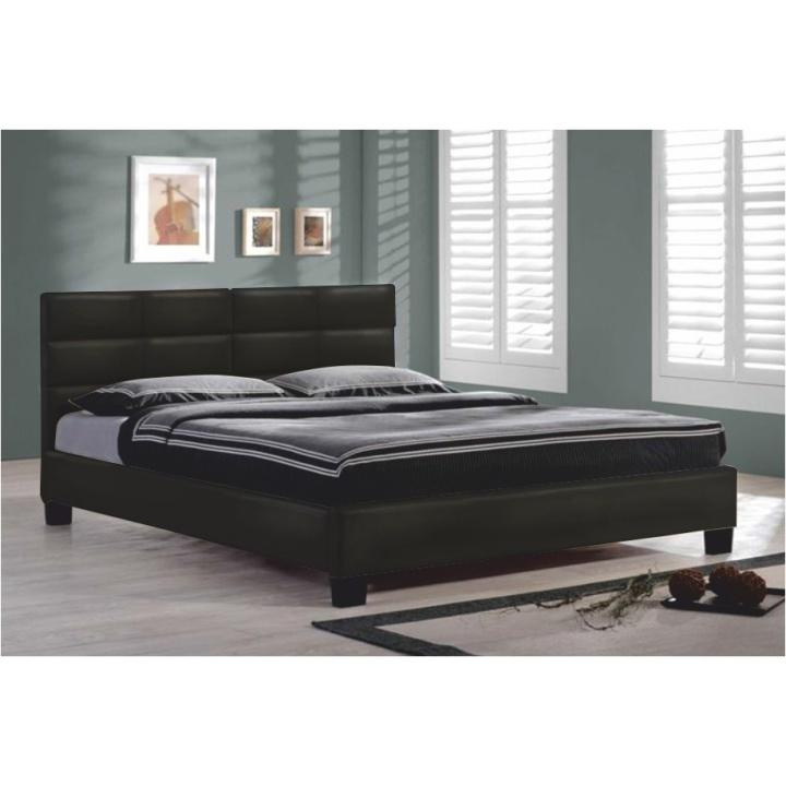 Manželská postel s roštem, 160x200, černá ekokůže, MIKEL