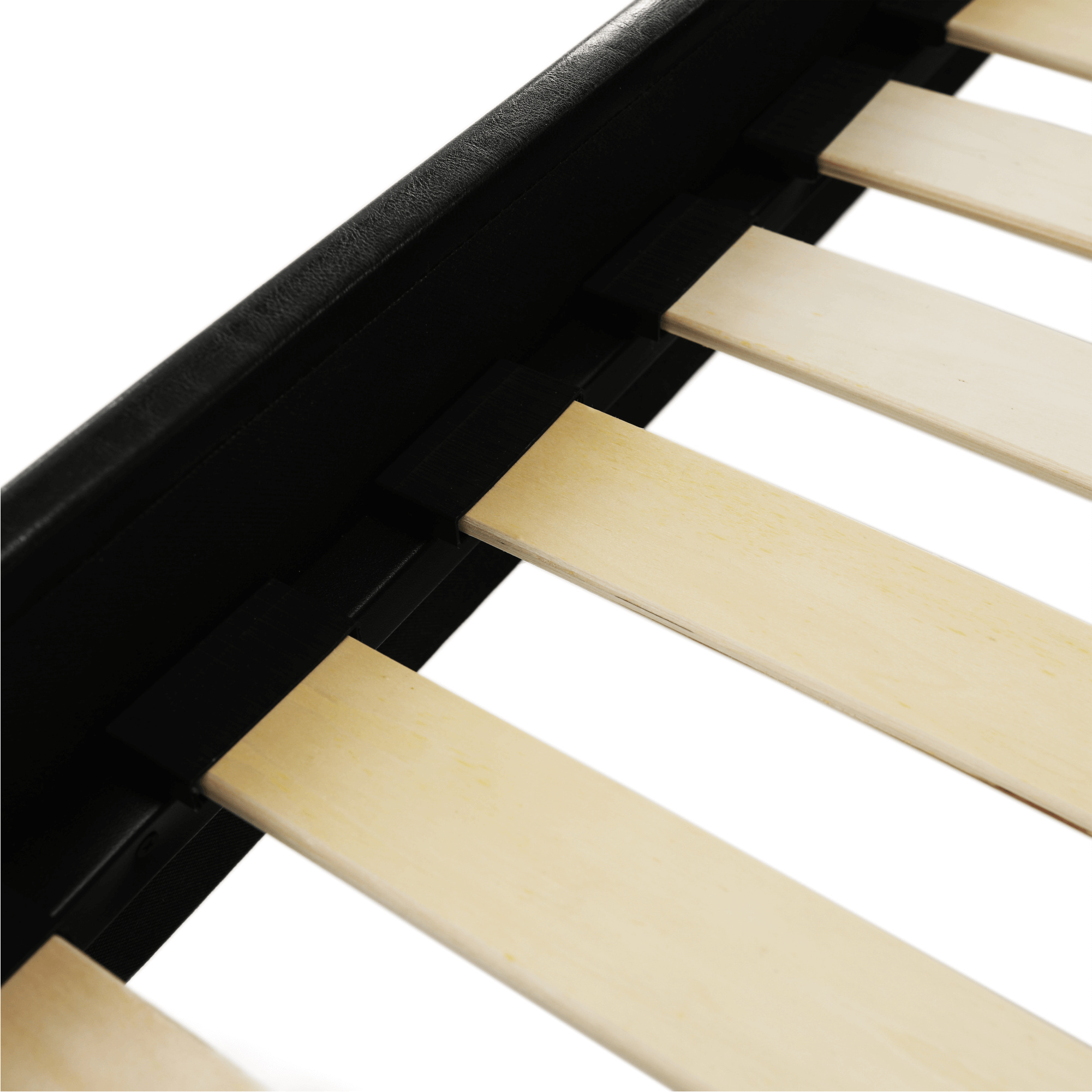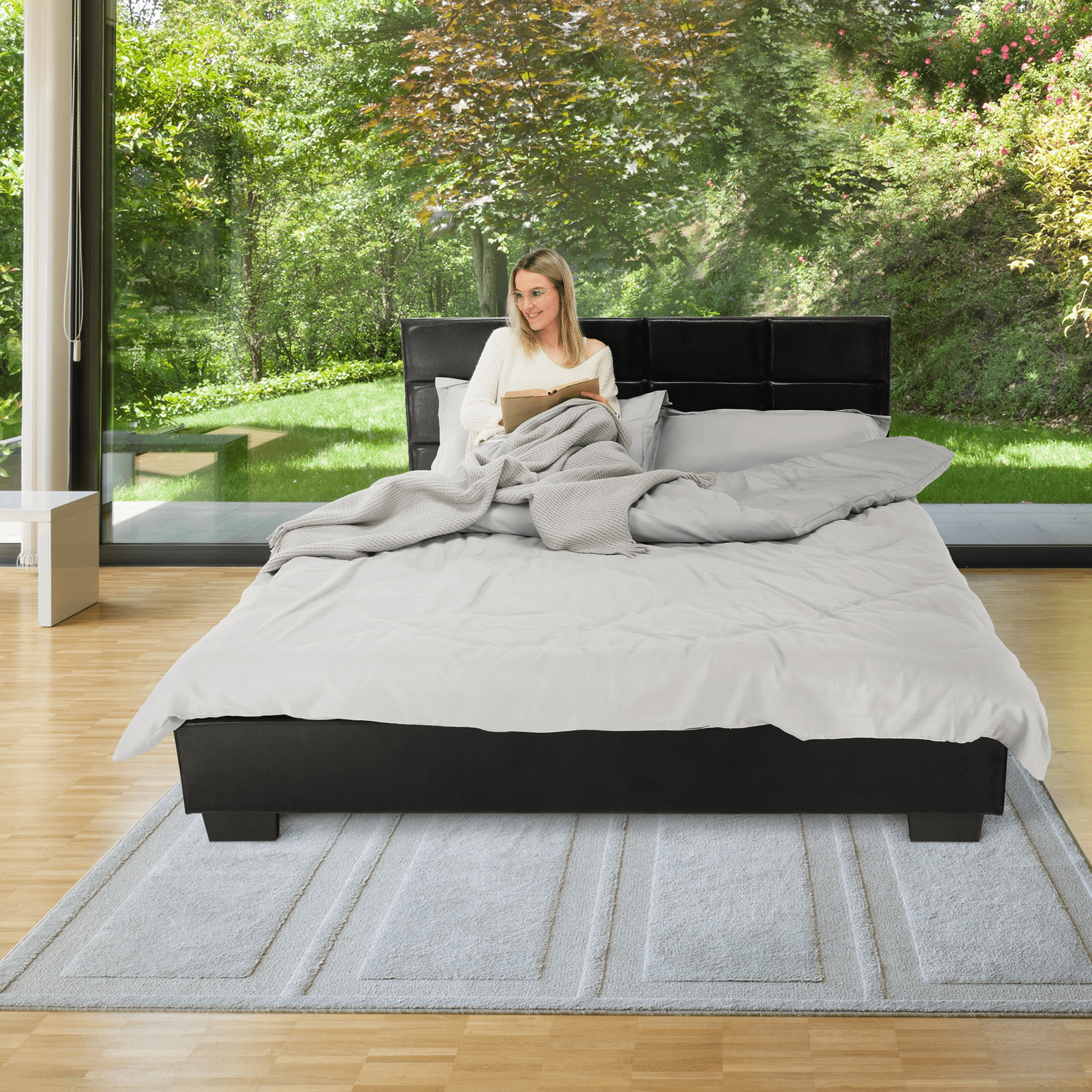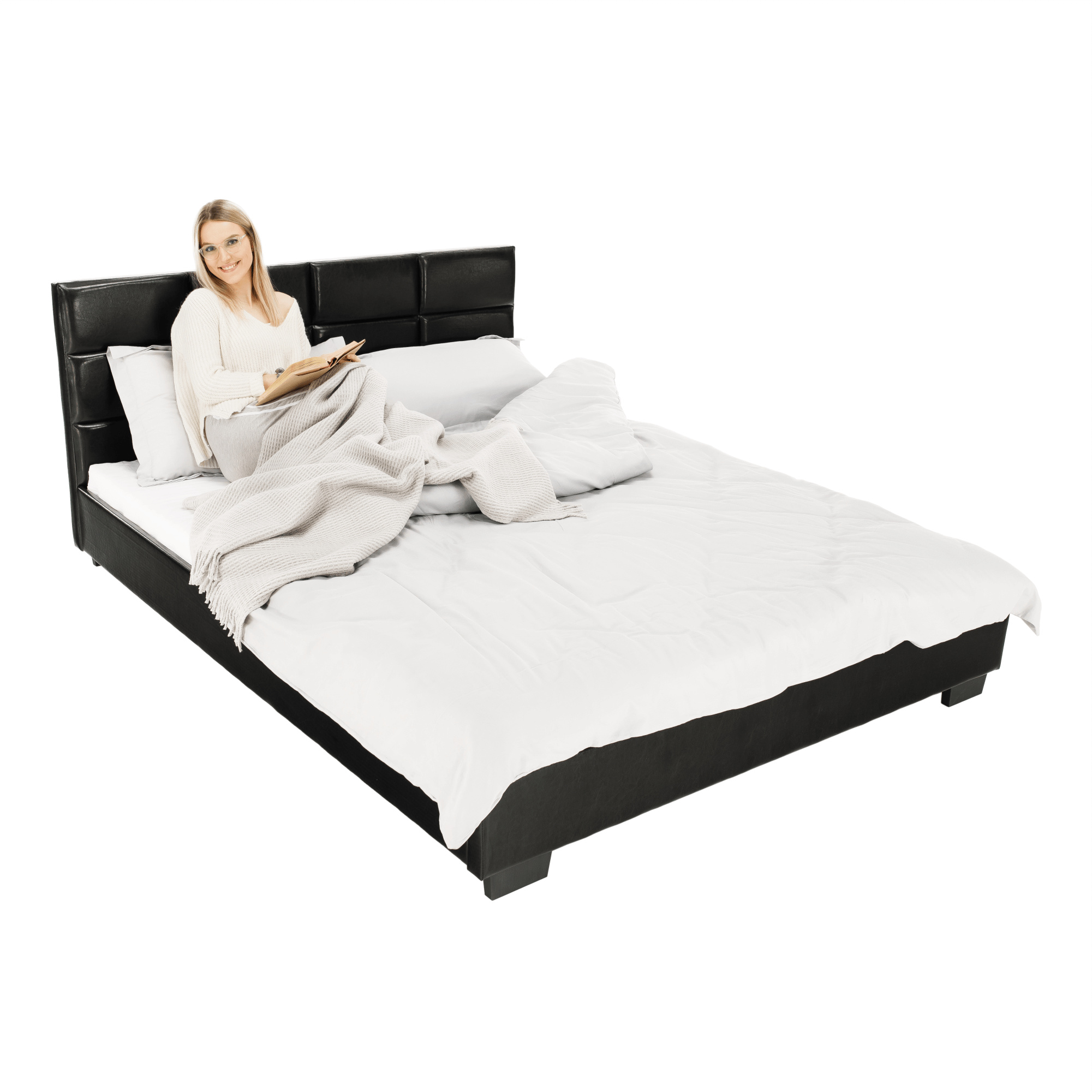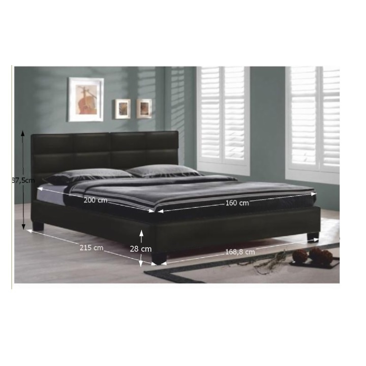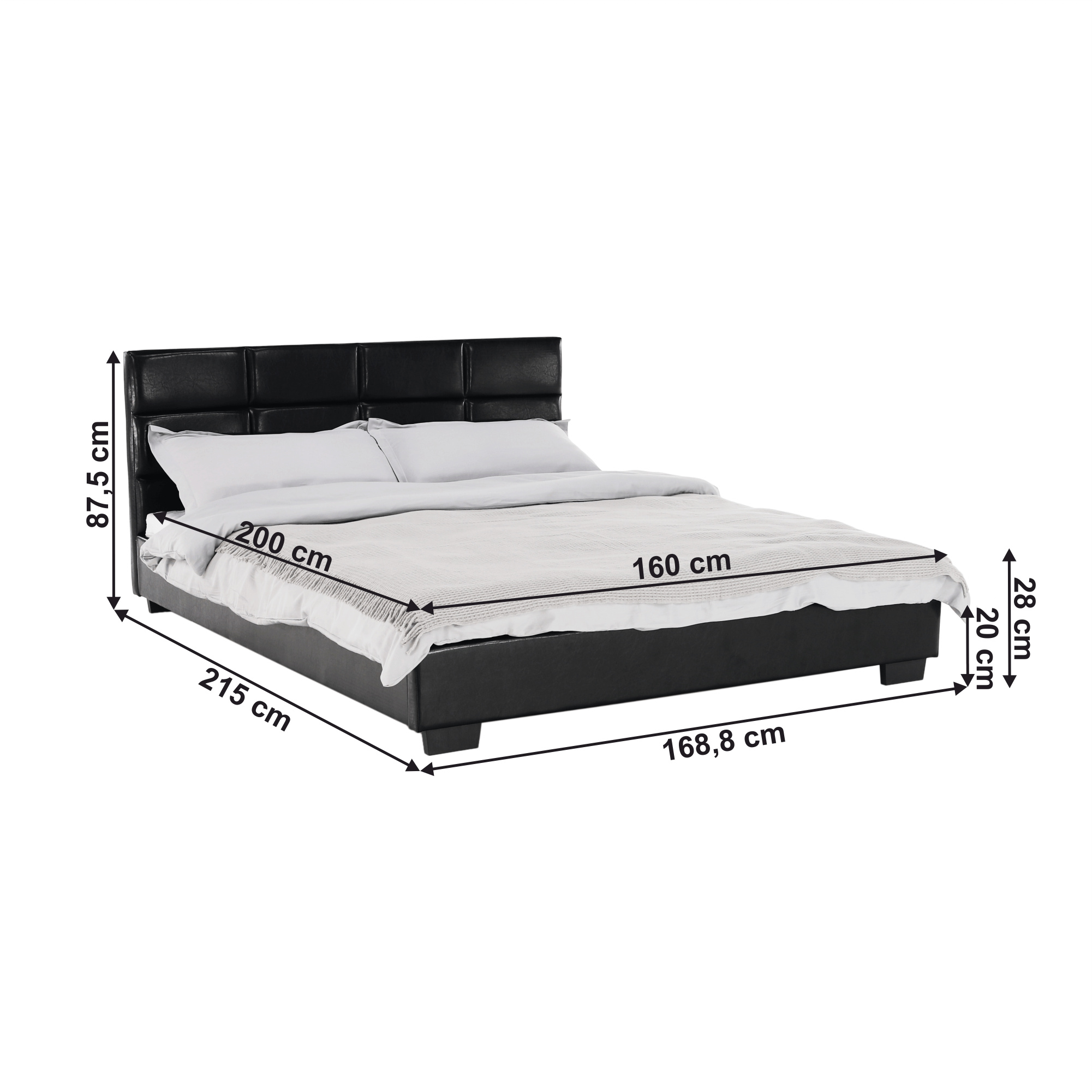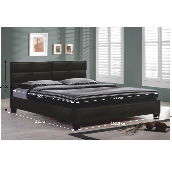 Postel MIKEL s prošívaným čelem, s lamelovým roštem. Barevné provedení černá koženka. Oděruodolnost textilie podle testu Martindale: 100 000 oděrek Rozměry (ŠxHxV): 168,8x215x87,5 cm Rozměry plochy na spaní (ŠxD): 160x200 cm K posteli doporučujeme zakoupit matraci s rozměrem 160x200 cm. Výška po rošt: 20 cm Výška postele: 28 cm Nosnost na lůžko: 100 kg Dodávané bez matrace.