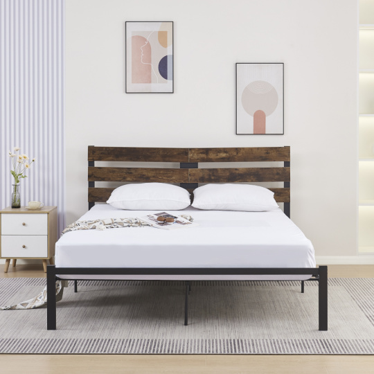 Materiál: kov/DTD Barva: černá/dub rustikál Rozměry (ŠxHxV): 187x206x101 cm Plocha na spaní (ŠxD): 180x200 cm Výška po rošt: 29,5 cm Nosnost: 300 kg Na nožičkách Výška nožiček: 26 cm Dodávána s kovovým roštem Dodáváno bez matrace Doporučujeme zakoupit matraci z naší nabídky Doporučená výška matrace: 20 cm Rustikální styl Dodáváno v demontu