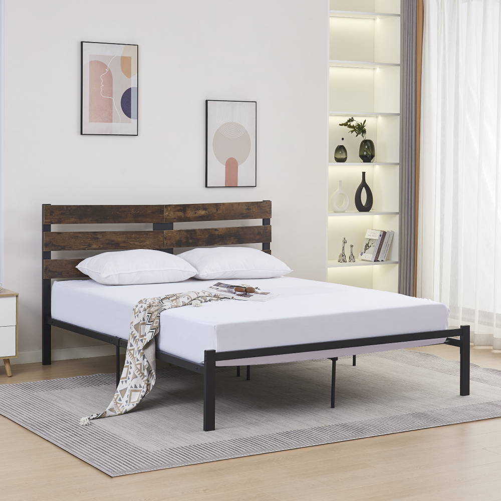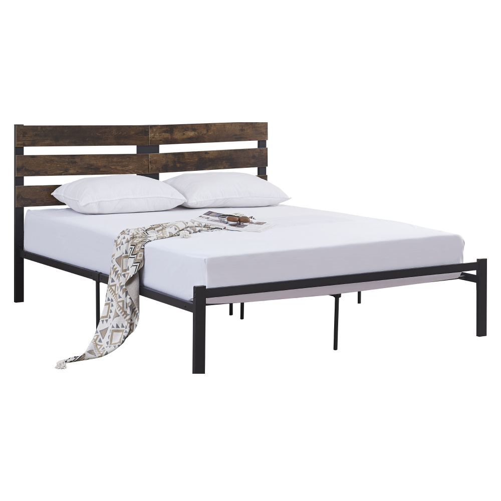 Materiál: kov/DTD Barva: černá/dub rustikál Rozměry (ŠxHxV): 187x206x101 cm Plocha na spaní (ŠxD): 180x200 cm Výška po rošt: 29,5 cm Nosnost: 300 kg Na nožičkách Výška nožiček: 26 cm Dodávána s kovovým roštem Dodáváno bez matrace Doporučujeme zakoupit matraci z naší nabídky Doporučená výška matrace: 20 cm Rustikální styl Dodáváno v demontu