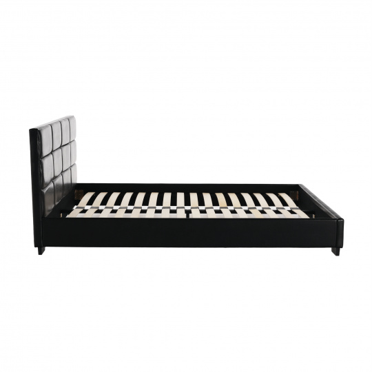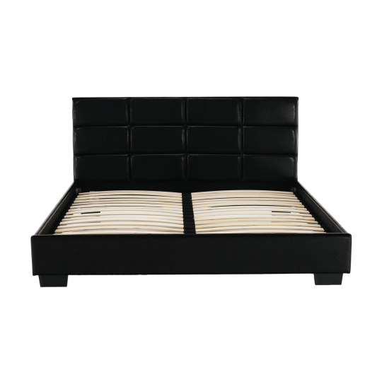 Postel MIKEL s prošívaným čelem, s lamelovým roštem. Barevné provedení černá koženka. Oděruodolnost textilie podle testu Martindale: 100 000 oděrek Rozměry (ŠxHxV): 168,8x215x87,5 cm Rozměry plochy na spaní (ŠxD): 160x200 cm K posteli doporučujeme zakoupit matraci s rozměrem 160x200 cm. Výška po rošt: 20 cm Výška postele: 28 cm Nosnost na lůžko: 100 kg Dodávané bez matrace.