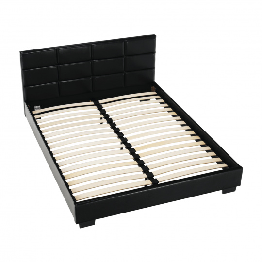Manželská postel s roštem, 160x200, černá ekokůže, MIKEL