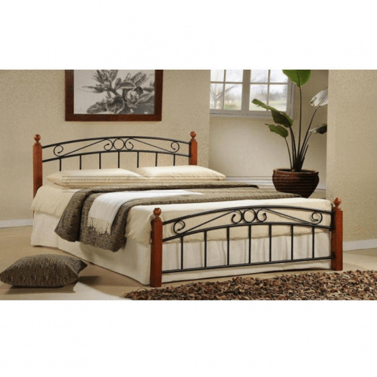 Manželská postel, třešeň/černý kov, 160x200, DOLORES