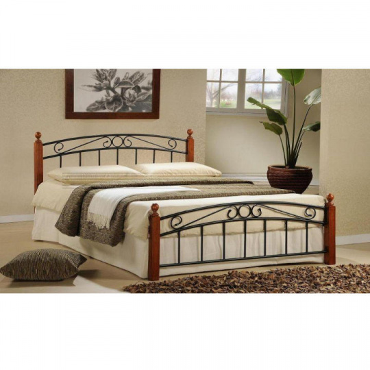 Manželská postel, třešeň / černý kov, 180x200, DOLORES
