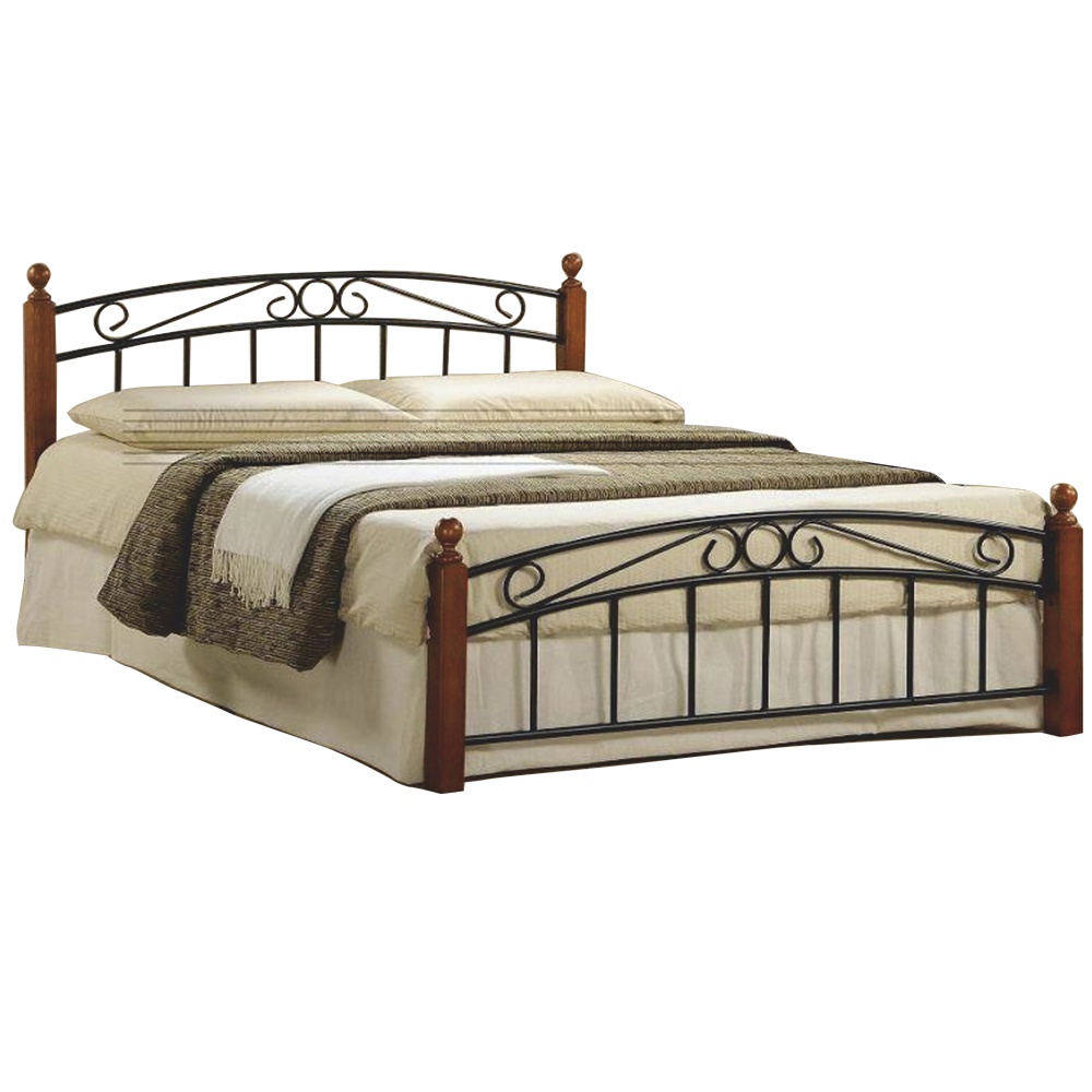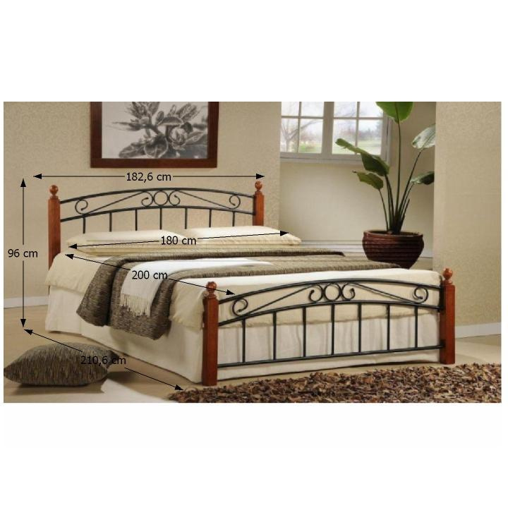 Manželská postel, třešeň / černý kov, 180x200, DOLORES