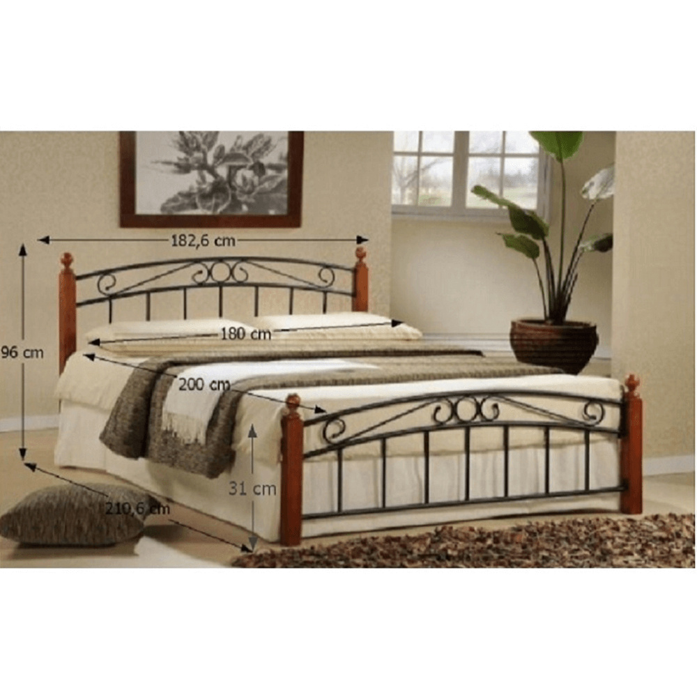 Kovová postel s lamelovým roštem, DOLORES Materiál: kov / dřevo Barva: černá / třešeň Vnější rozměry postele (ŠxHxV): 182,8x210,6x96 cm Plocha na spaní: 180x200 cm Výška po rošt: 31 cm Nosnost: 100 kg Dodávaná s lamelovým roštem Dodávána bez matrace Dodávané v demontu Možnost dokoupení matrace s rozměrem 180x200 cm nebo 2x 90x200 cm z naší nabídky. Dodávané v demontu.