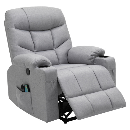 Masážní polohovací křeslo, světle šedá, HUDSON
