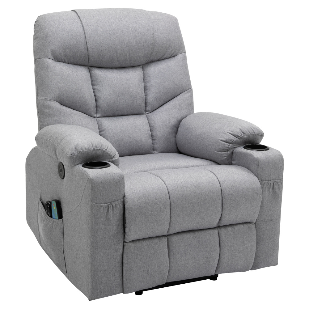 Masážní polohovací křeslo, světle šedá, HUDSON