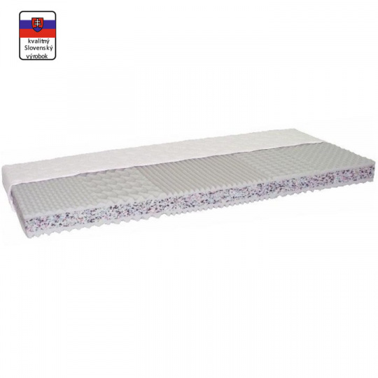 Materiál: PUR pěna/RE pěna Rozměry (ŠxD): 80x200 cm Výška matrace: 13 cm Nosnost: cca 110 kg Tvrdost matrace: tvrdá T4 Matrace v této kategorii (stupeň tvrdosti T4) jsou opravdu tuhé. Jsou dostatečně odpružené, aby se předešlo problémům v oblasti s největším tlakovým zatížením. Vhodné pro spaní na zádech a břiše. Pro lidi s hmotností více než 100 kilogramů. Oboustranný Masážní nopky na povrchu Možnost použít na pevném i polohovacím roštu Potah Silver se zipem po celém obvodu Ideální rozestup mezi latěmi/lamelami je 2-3 cm