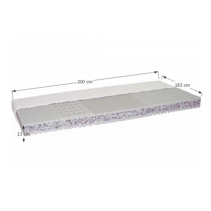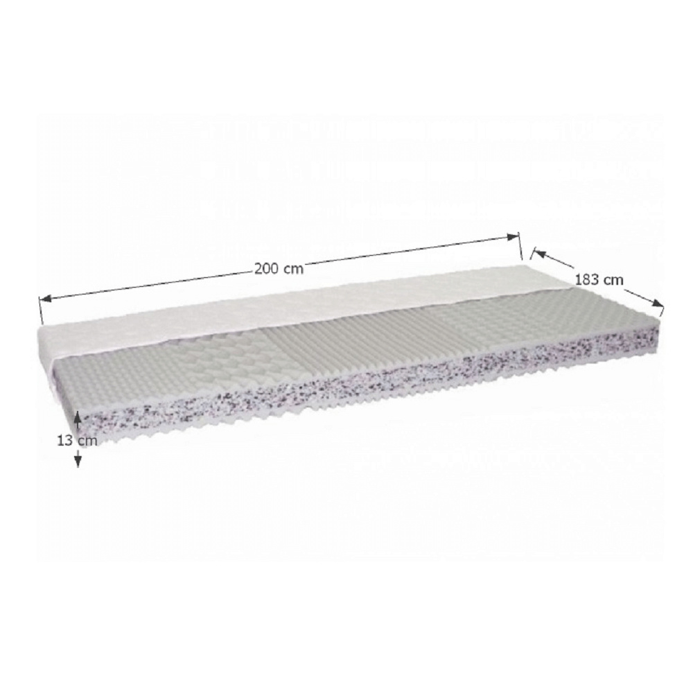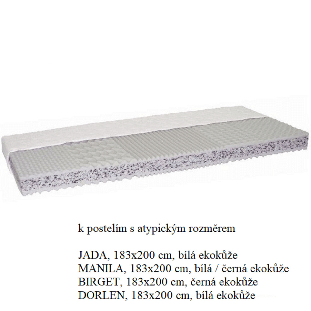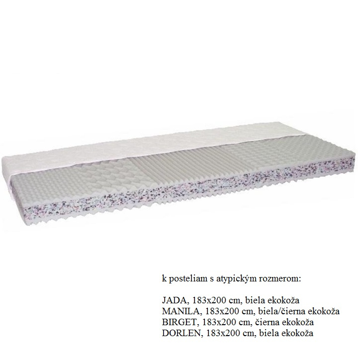 Sendvičová matrace Catania Eco ATYP, 183x200, kombinace PUR pěny a RE pěny, potah SILVER / 100% polyester /, lehce snímatelný, zip po celém obvodu, prát při 60 ° C. Matrace je v atypickém rozměru 183x200 cm. Nosnosť: cca 110 kg. Ideální rozestup mezi latěmi/lamelami je 2-3 cm Tvrdost matrace: tvrdý T4. Je speciálně vyroben k postelím s takovým vnitřním rozměrem. Matrace doporučujeme k postelím: postel JADA, 180x200 cm, ekokůže bílá postel MANILA, 180x200 cm, ekokůže bílá / černá postel BIRGET, 180x200 cm, ekokůže černá postel DORLEN, 180x200 cm, ekokůže bílá