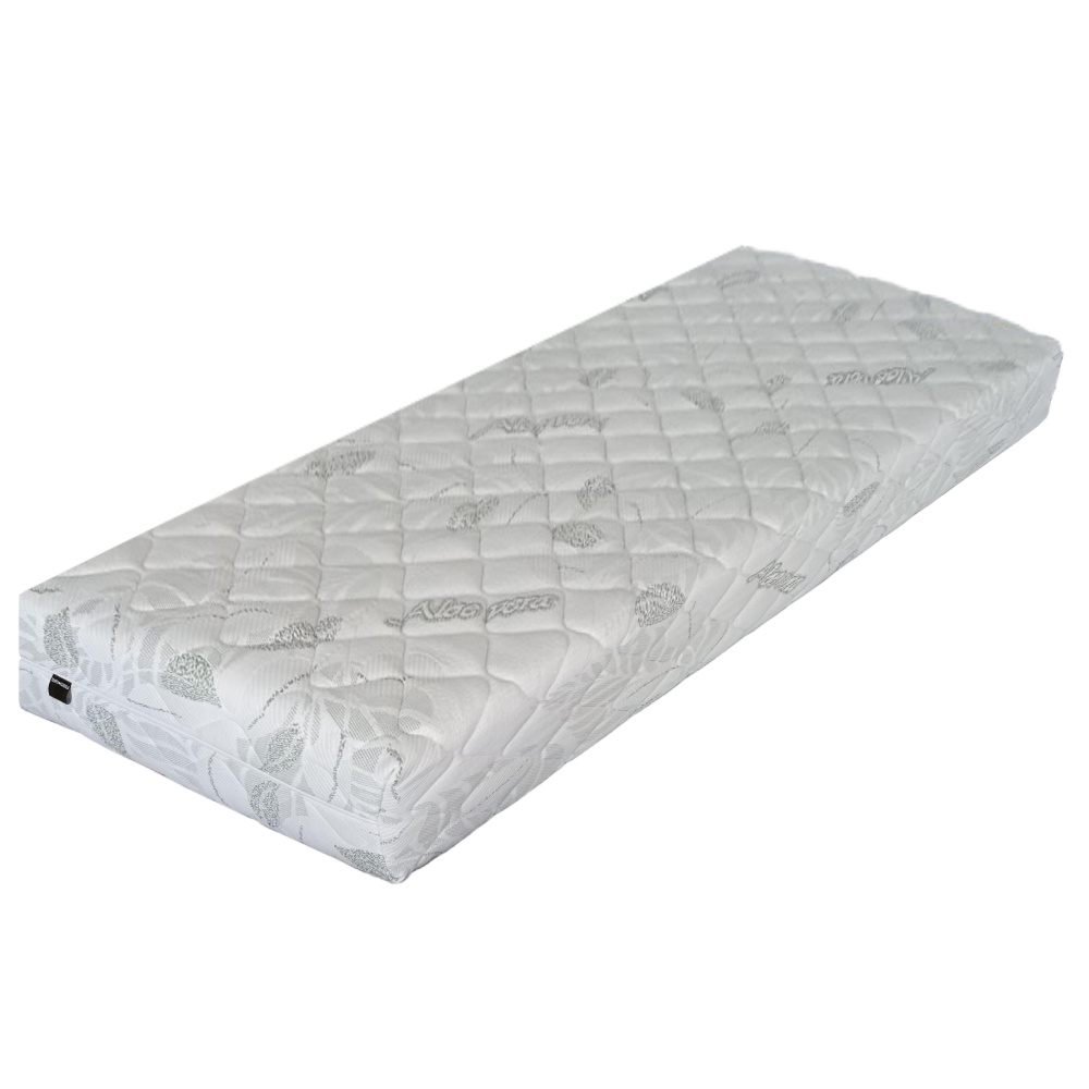 Materiál: studená pěna, polyuretanová pěna/elastická pěna/potah Rozměry (ŠxD): bílá Barevné provedení: 180x200 cm Výška matrace: 18 cm Nosnost na osobu: 110 kg Tvrdost matrací: H3 Oboustranný Potah z výtažků Aloe Vera Potah s certifikátem OEKO-TEX STANDARD Se zipem po celém obvodu Snímatelný Pratelný při teplotě do 40 °C Doporučujeme lamelový rošt Minimální počet lamel 28 Mezera mezi lamelami Max. 6 cm Matrace je vakuově balená, proto po jejím rozbalení ji doporučujeme nechat na rovném podkladu 3-5 dní v klidu, aby zregenerovala na deklarovanou výšku.