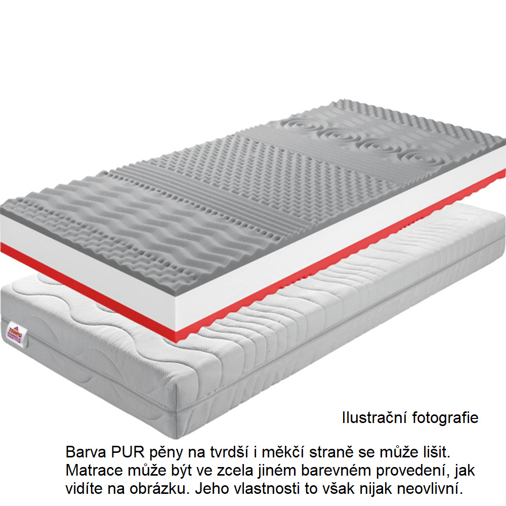 Sendvičová pěnová matrace BE TEMPO 30 NEW s potahem Chloe Activ, měkčí a tvrdší strana Materiál: PUR pěna Rozměry (ŠxD): 183x200 cm Výška matrace: 18 cm Tvrdost matrace: středně tvrdý Nosnost: 120 kg na lůžko Se sedmi zónami Barva PUR pěny se může lišit Doporučujeme pružný lamelový (předpjaté, pružné lamely) Mezera mezi lamelami Max. 6 cm Tloušťka lamel 0,5-1 cm Kvalitní slovenský výrobek.